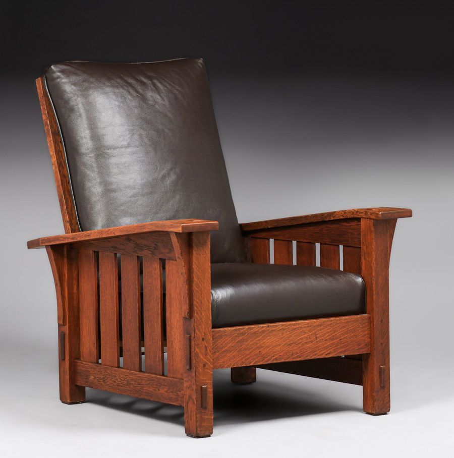 - Gustav Stickley #369 Slatted Bentarm Morris Chair c1912-1915