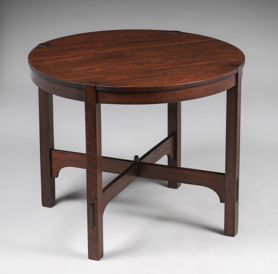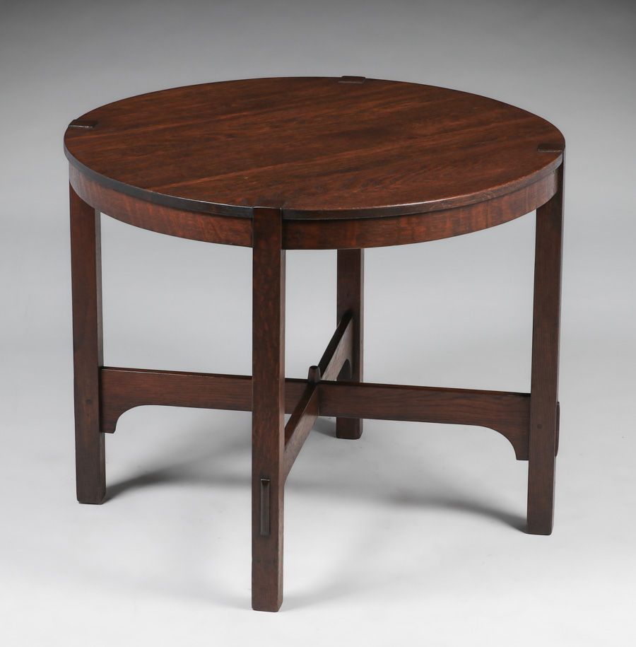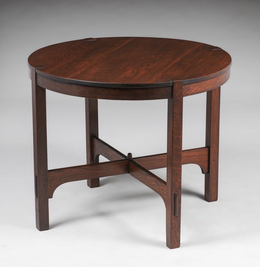 Gustav Stickley 36"d Lamp Table c1910. Unsigned. Excellent original finish. 36"d x 29"h SOLD