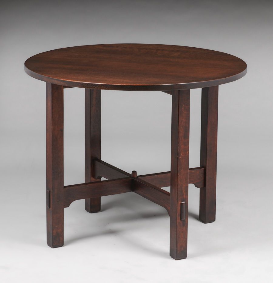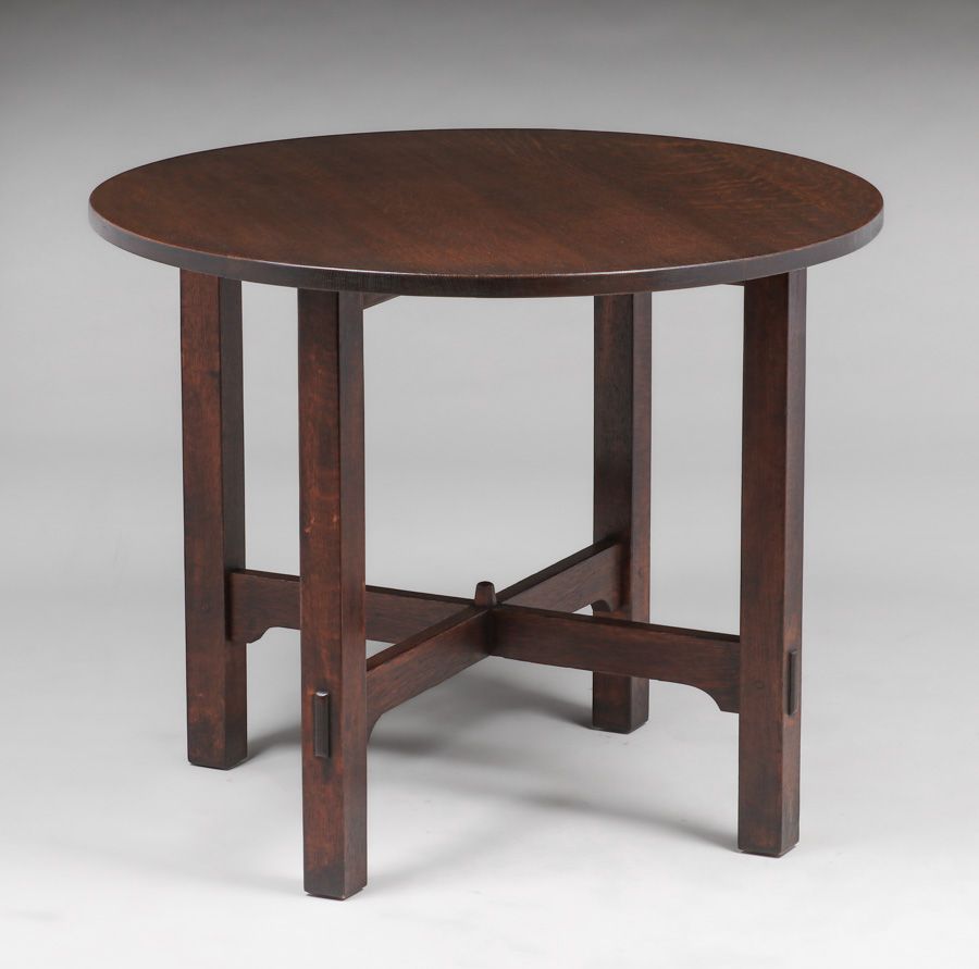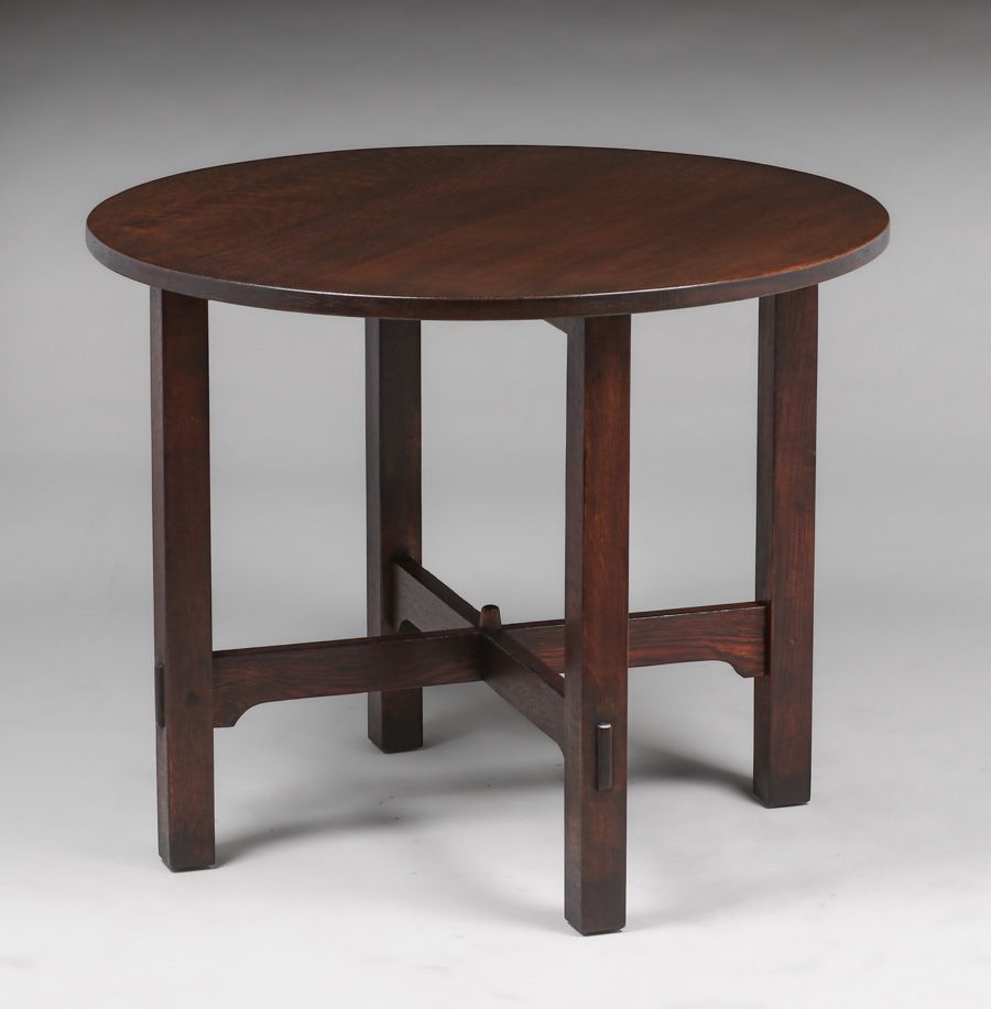 Gustav Stickley 38"d Lamp Table c1910. Unsigned. Top refinished perfectly tom match original finish. 38"d x 30"h $2500