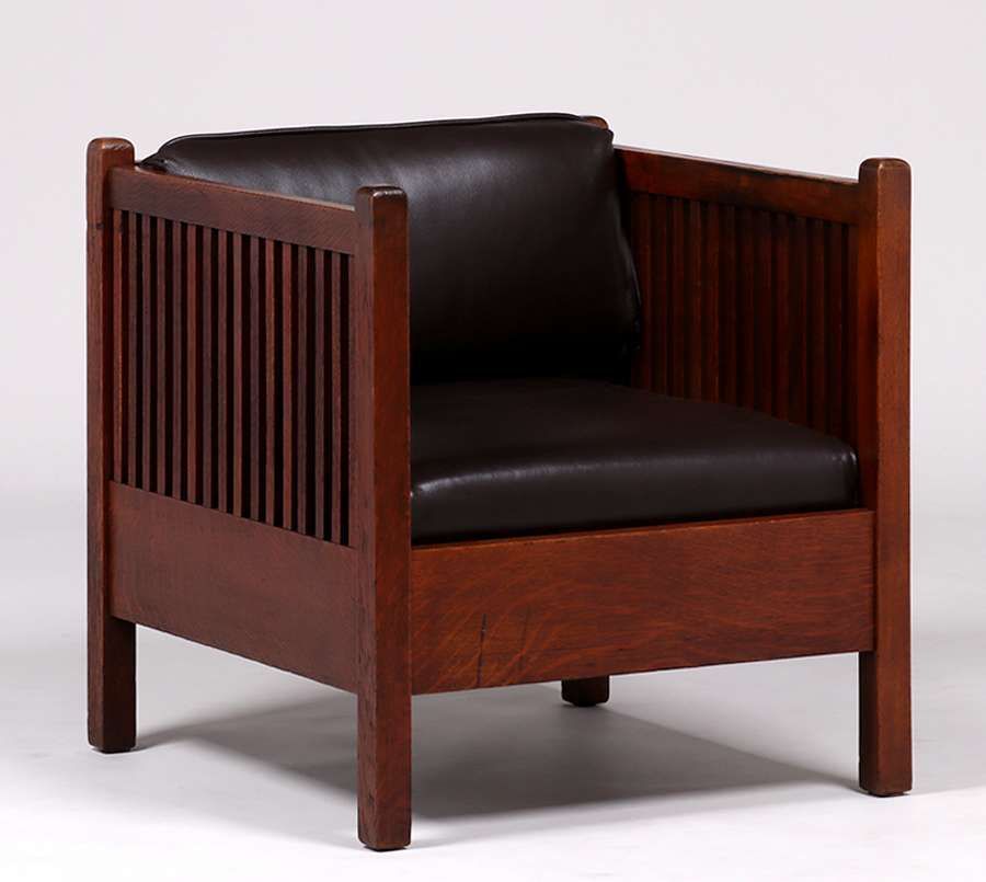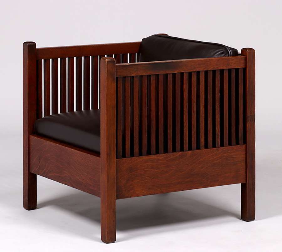 - Gustav Stickley #391 Spindled Cube Chair c1907