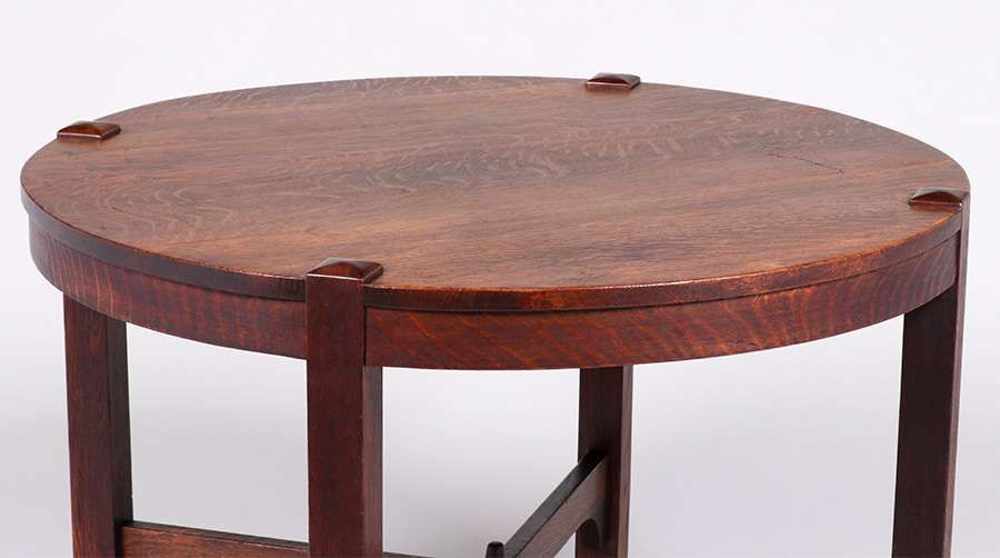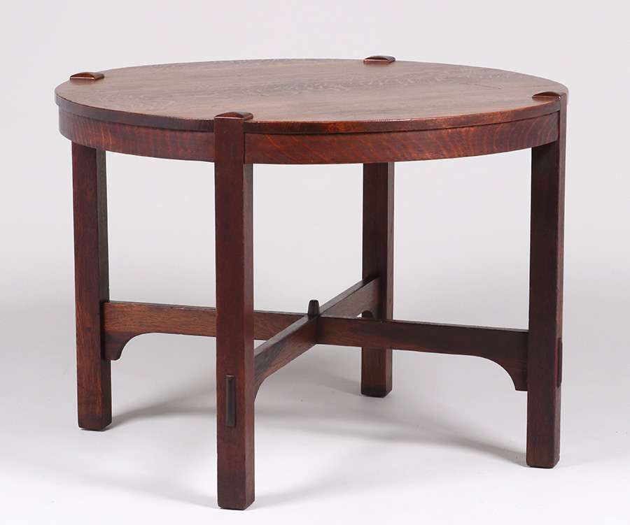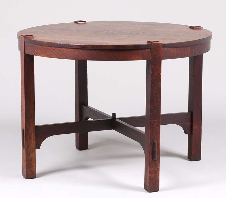 - Gustav Stickley 40"d Lamp Table c1910