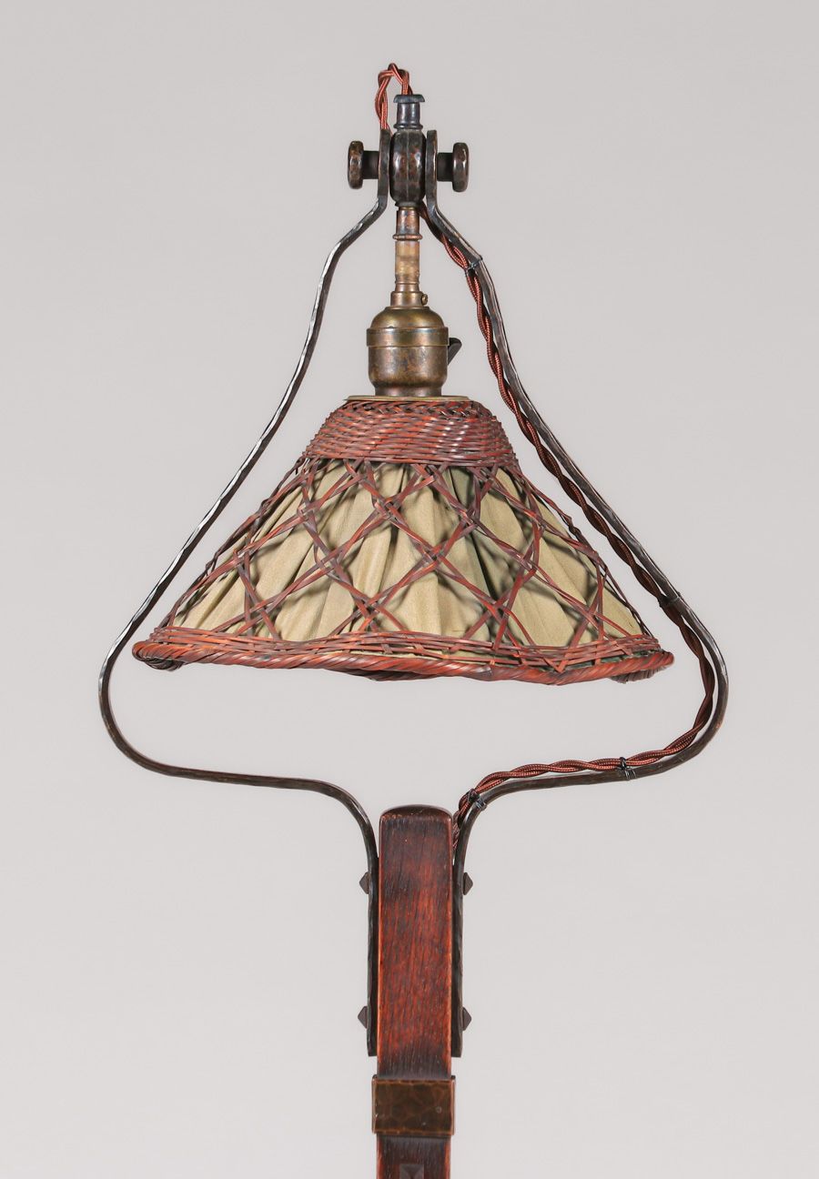 - Gustav Stickley #500 Oak & Wicker Floor Lamp c1905