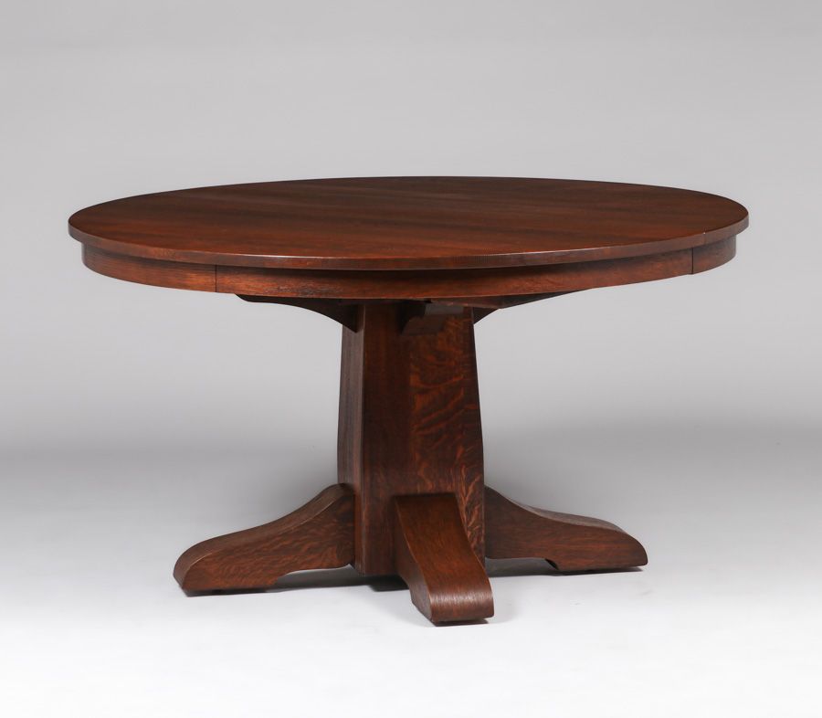 - Gustav Stickley 54"d Pedestal Dining Table c1910