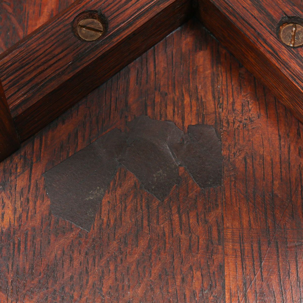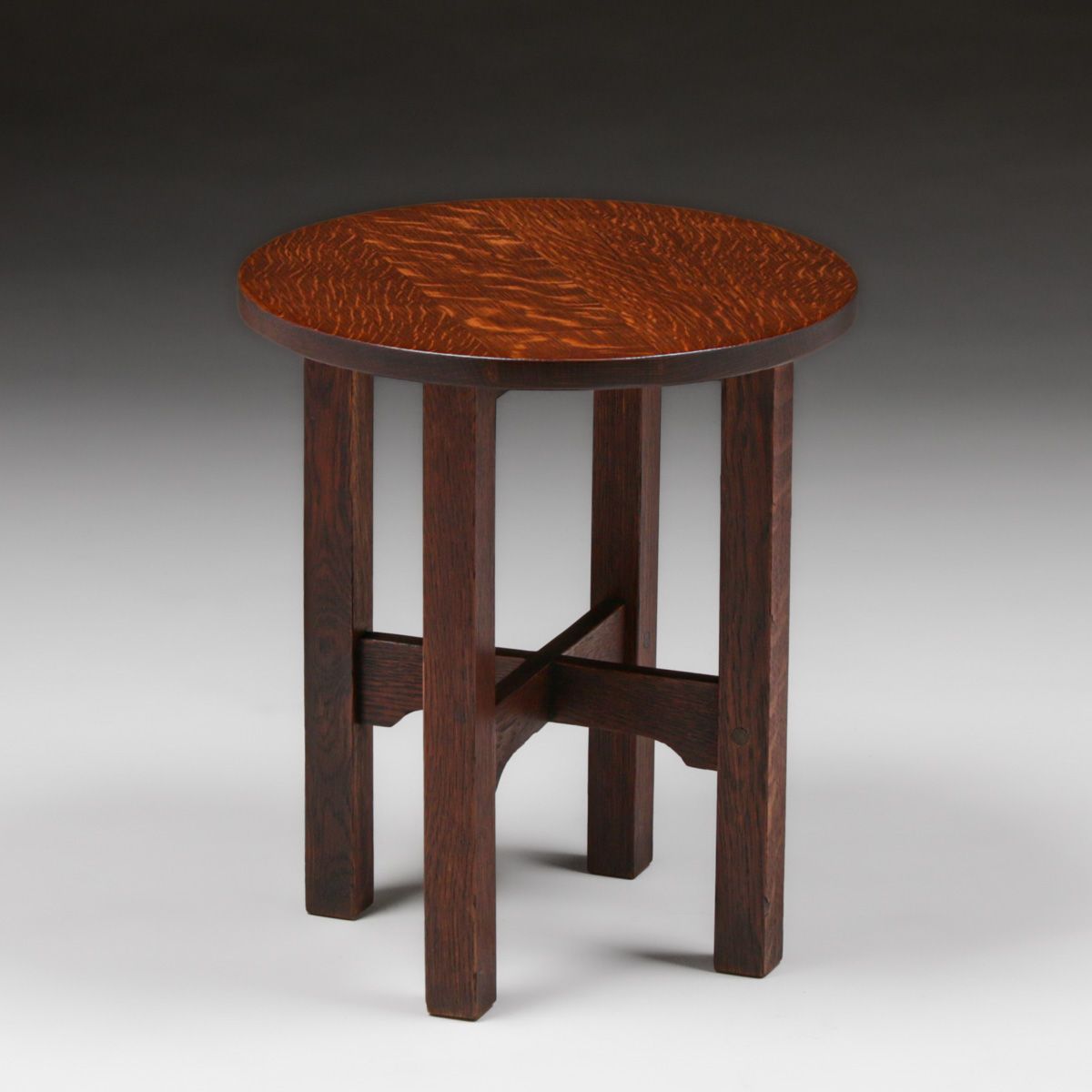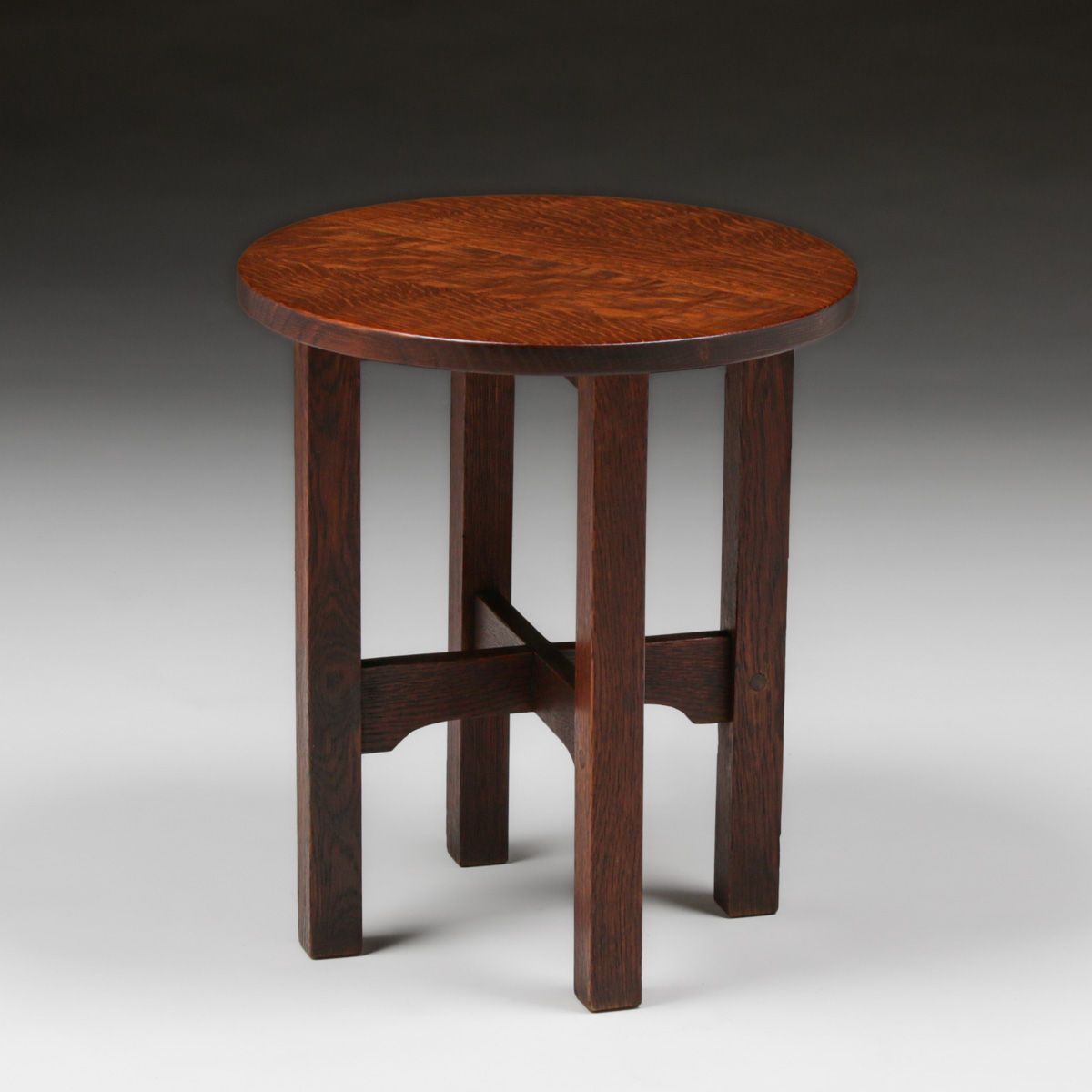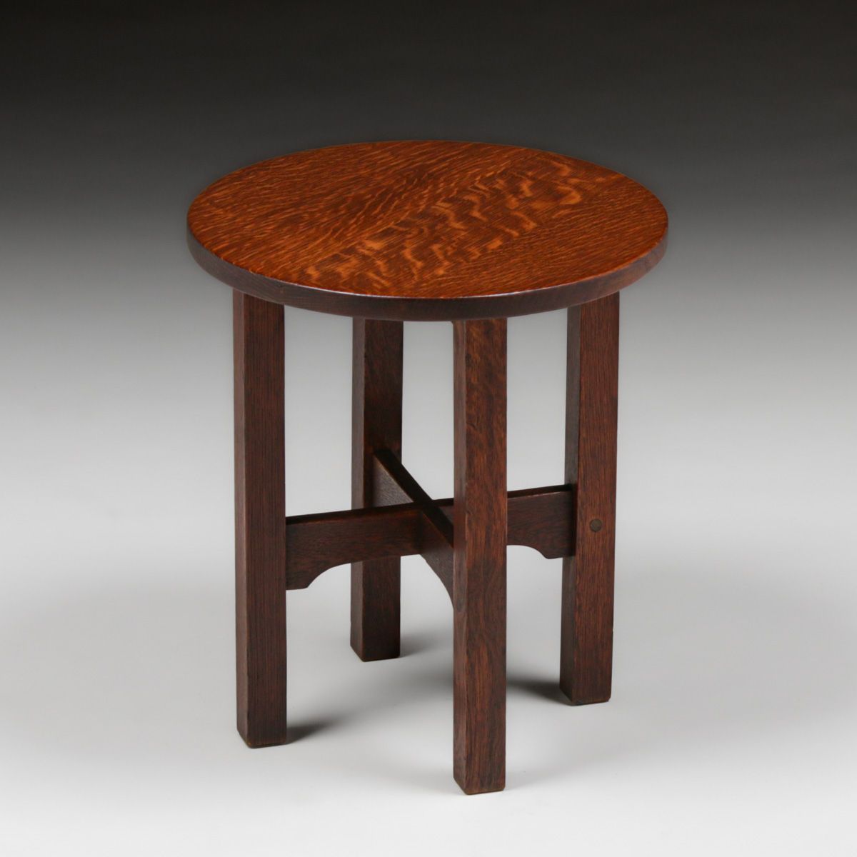 Gustav Stickley #601 Oak Taboret c1910. Signed with partial paper label. Top refinished perfectly to match excellent original finish. 14"d x 16"h