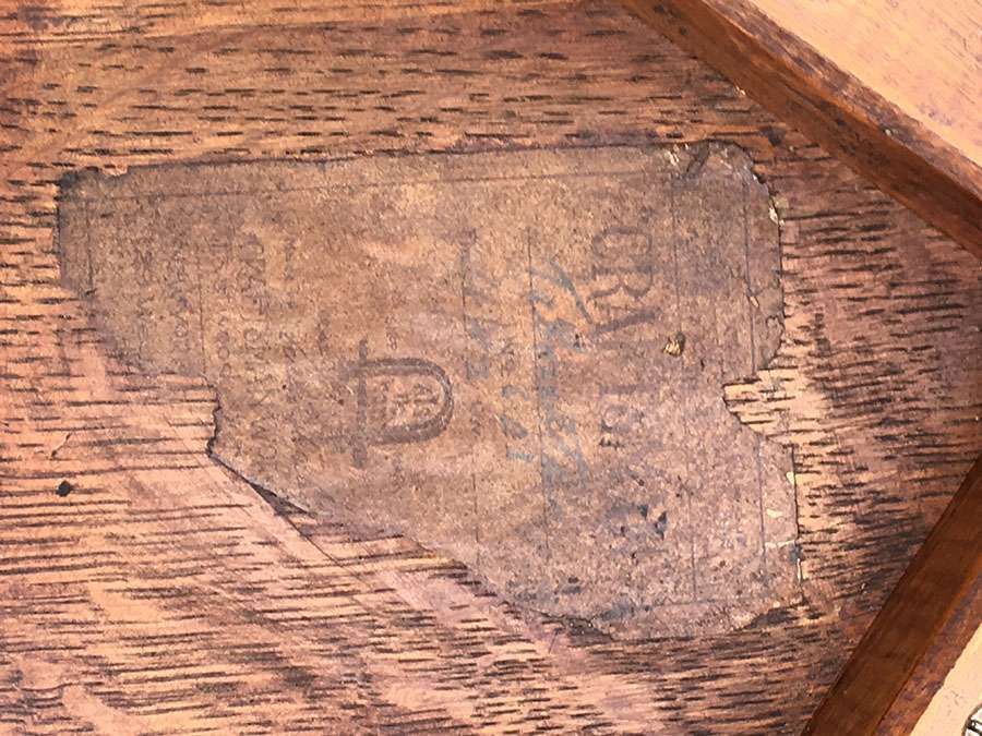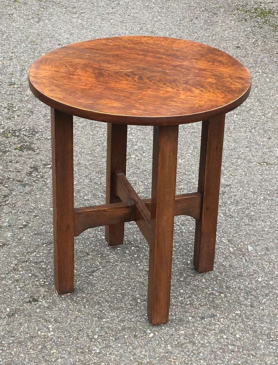 Gustav Stickley #602 oak taboret. Old refinish. Signed with paper label. 20"h x 18"d SOLD
