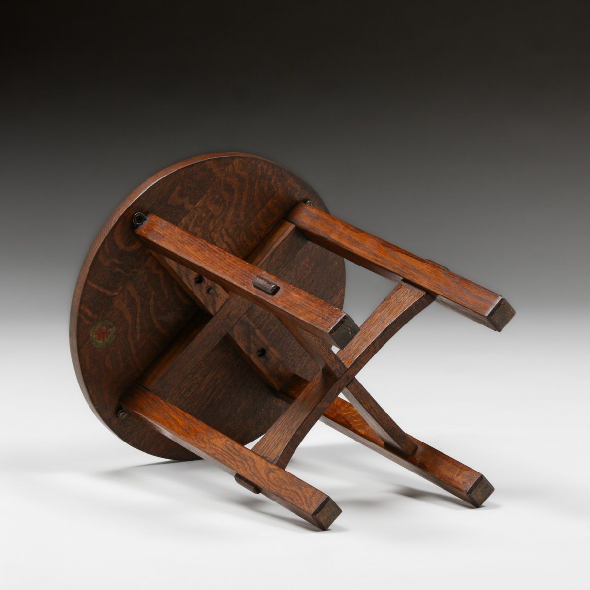 Gustav Stickley #602 Taboret c1917. Signed with conjoined mark. Very nicely refinished. 18"h x 15.75"d