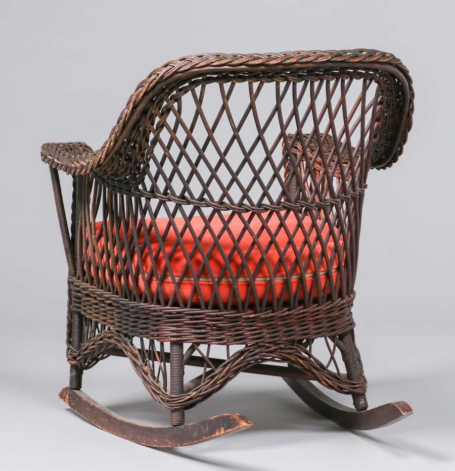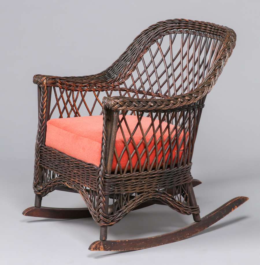 Gustav Stickley #61 Willow Rocker c1910. Unsigned. Excellent condition. 32"h x 26.5"w x 32"d SOLD