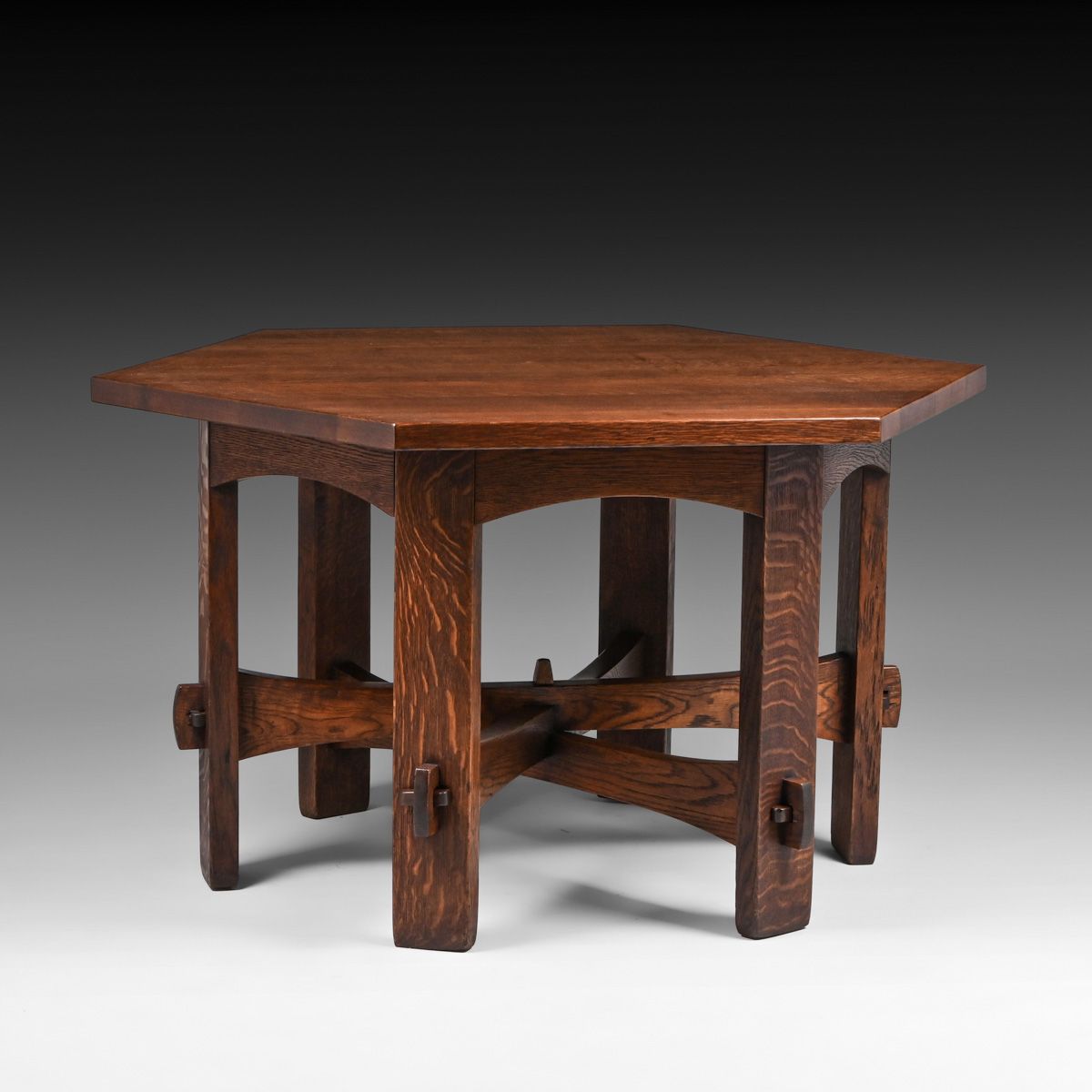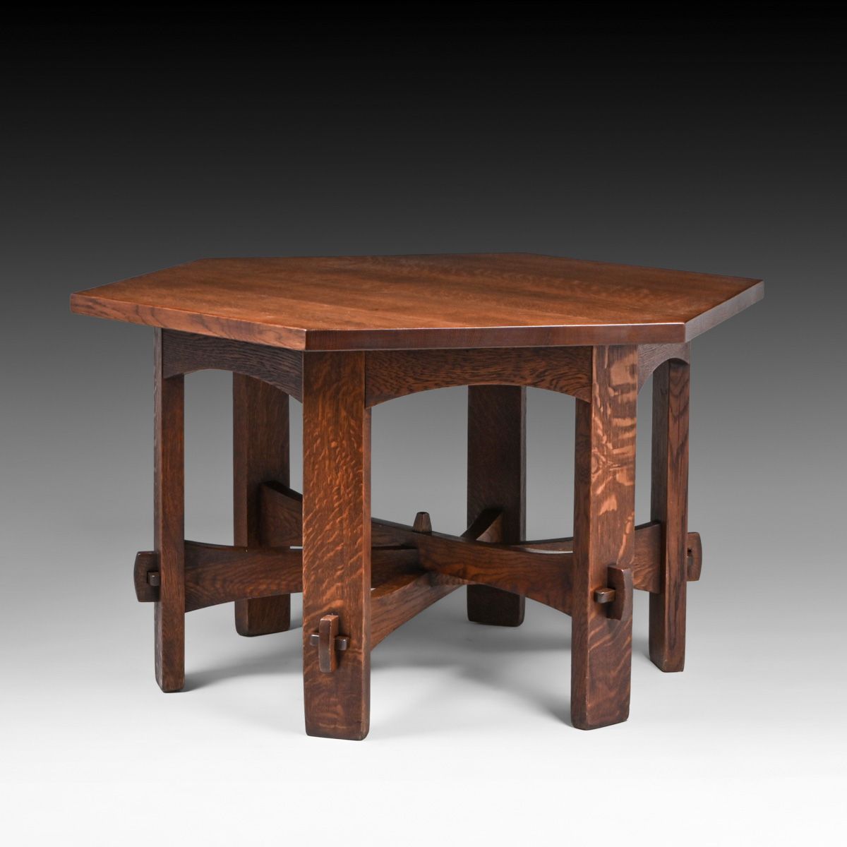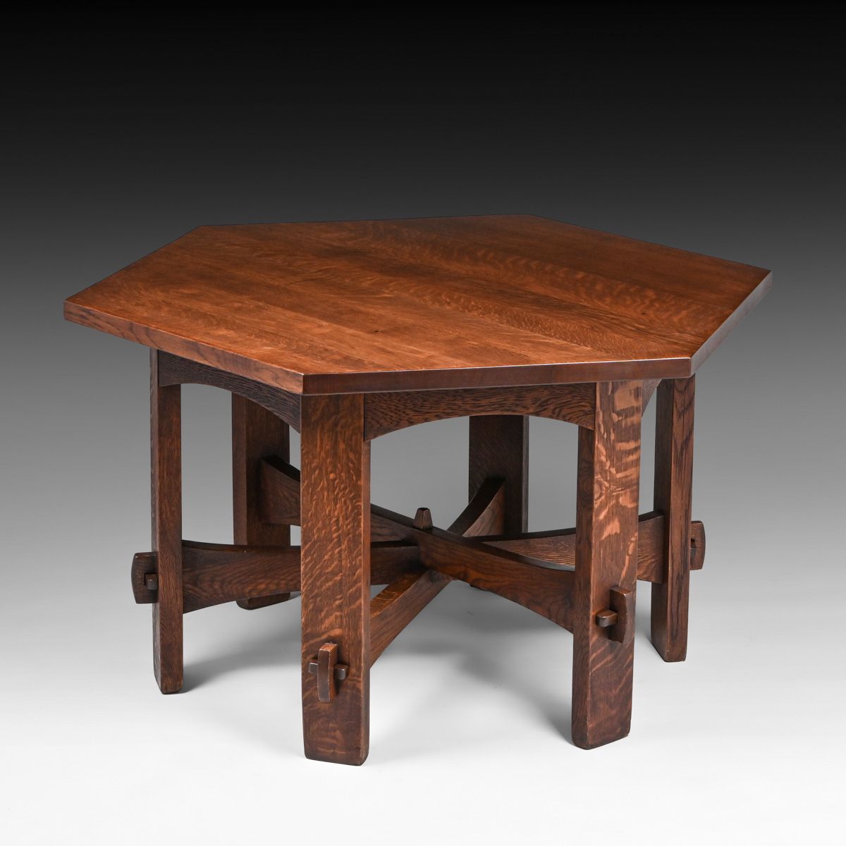 - Gustav Stickley #625 Oak Hexagonal Library Table c1905