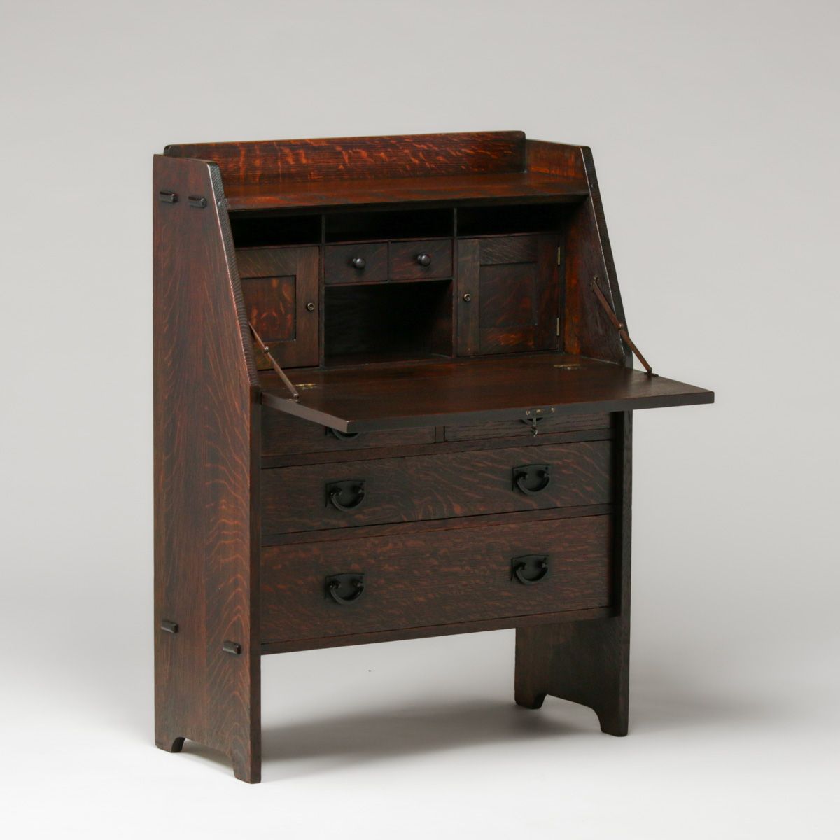 Gustav Stickley #732 Four-Drawer Dropfront Desk c1910. Signed. Very nicely refinished. 43.75"h x 32"w x 14"d.