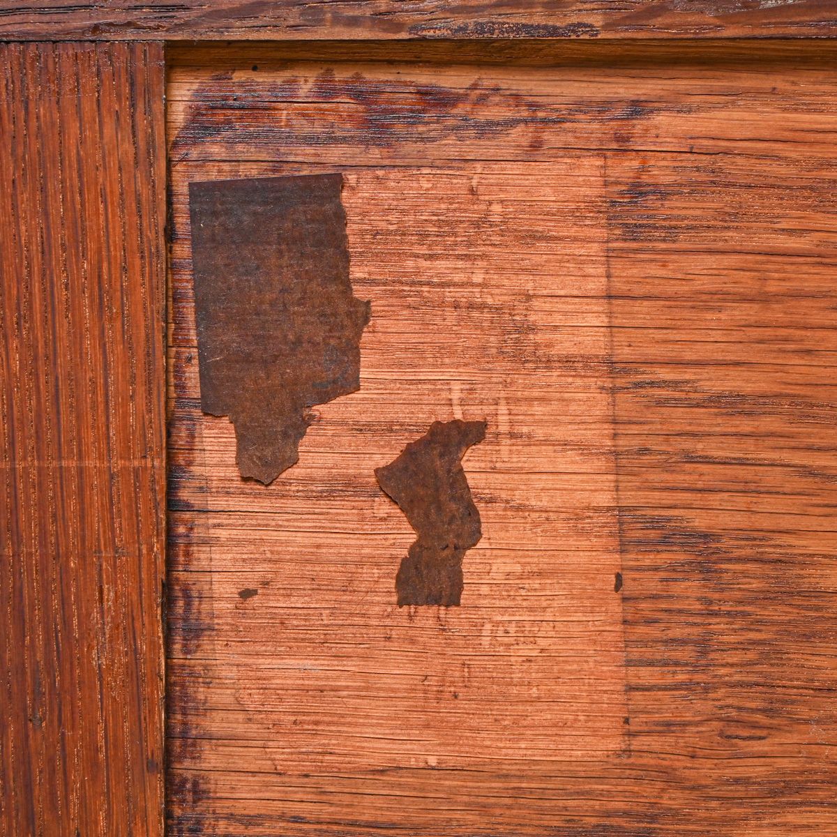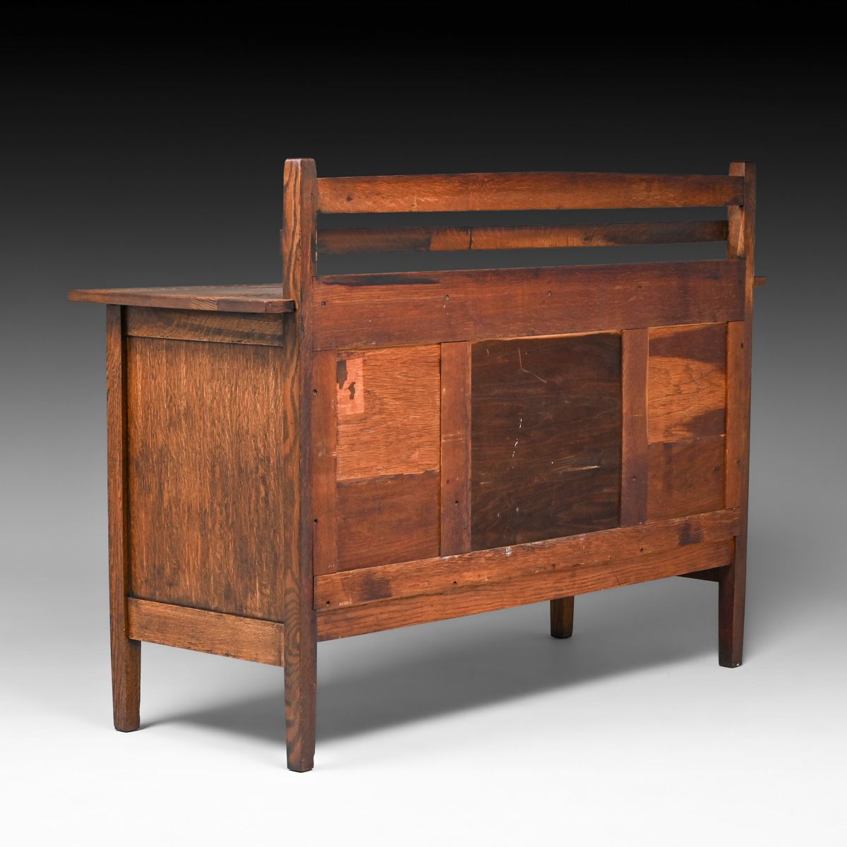 Gustav Stickley #814 1/2 Strap-Hinge Sideboard c1907. Signed with red decal and partial paper label. Rubbed out original finish. 66"w x 48"h x 24"d