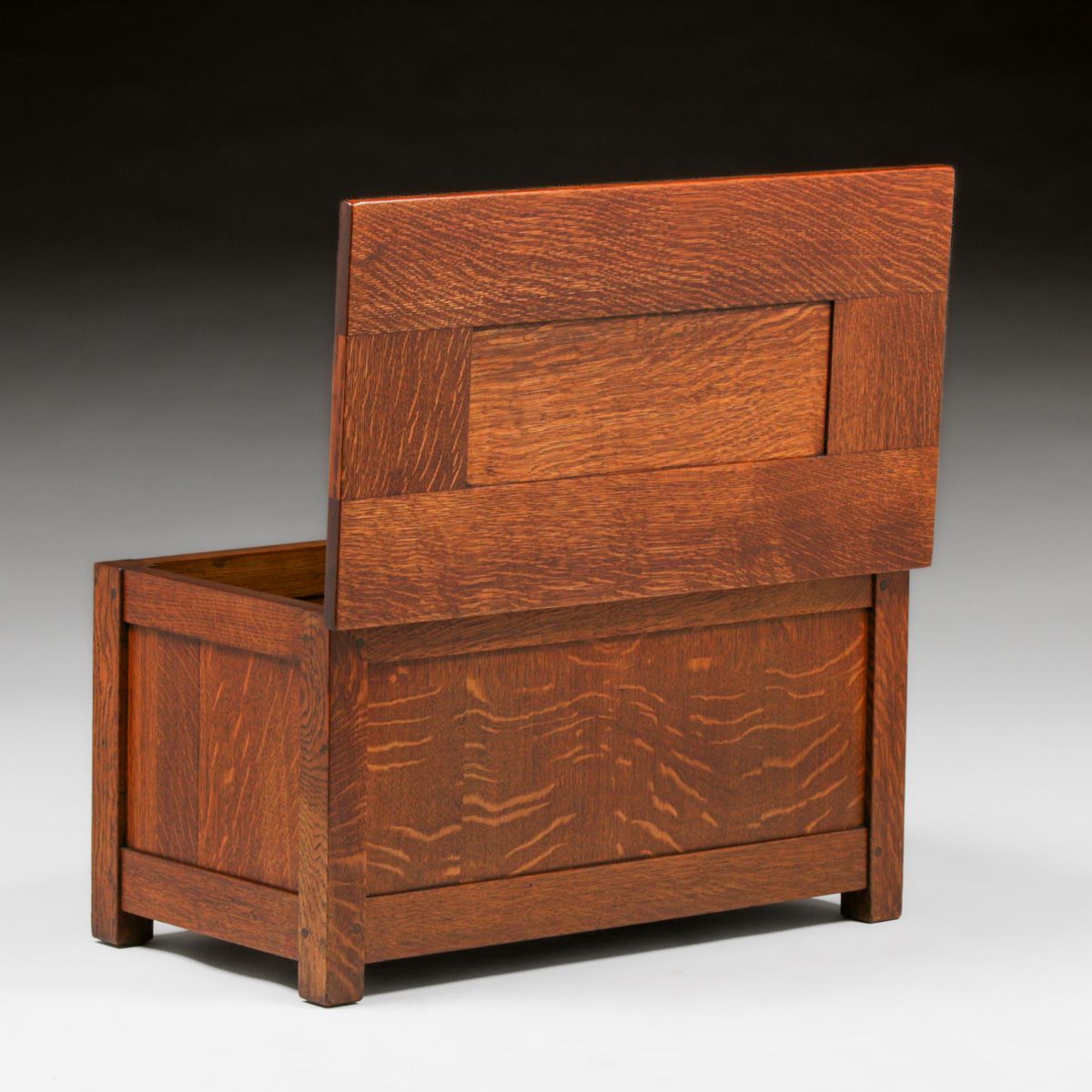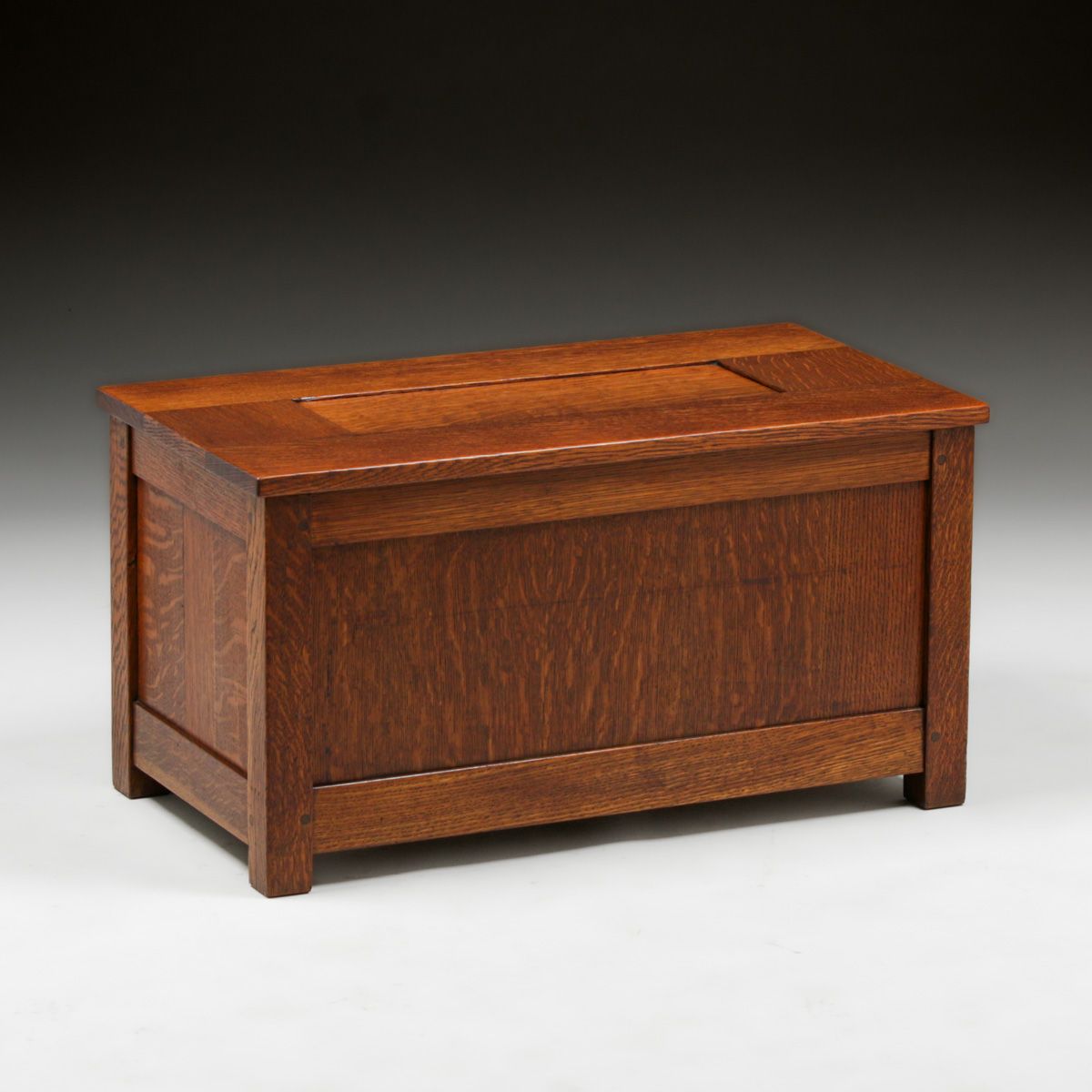 Gustav Stickley #95 Oak “Shirt Box” c1910. Makes a perfect small coffee table. Signed with paper label. Excellent original finish. 30”w x 14.25”d x 16"h.