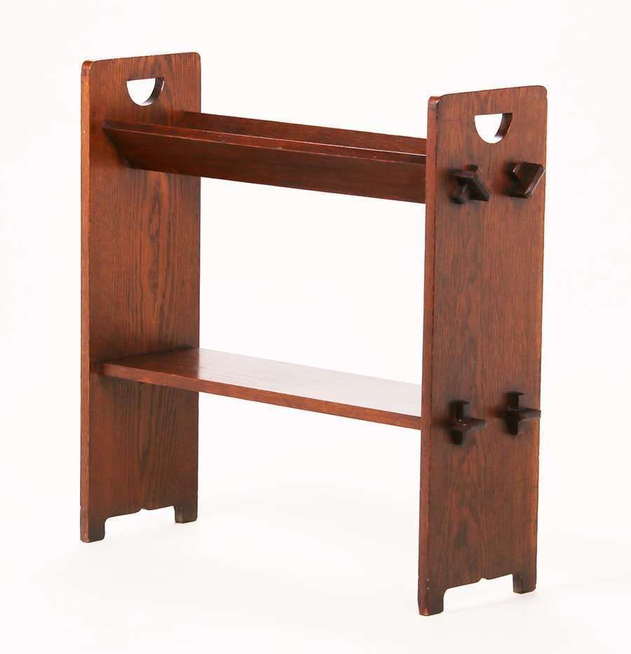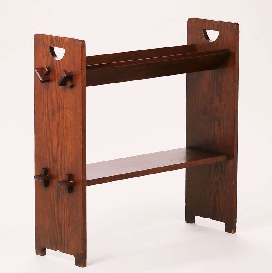 Gustav Stickley book trough bookshelf with tenon & key construction. Signed. Excellent original finish. 31"h x 10"d x 30"w (33"w with tenons) SOLD