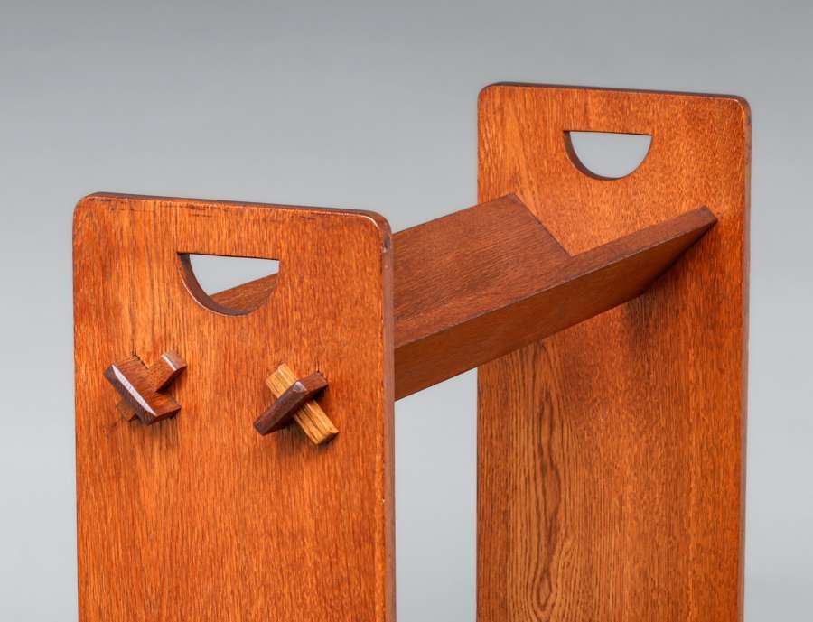 Gustav Stickley Book Trough Magazine Stand c1912-1915. Signed with branded mark. Excellent original finish. 30.75″h x 32.5″w x 10″d SOLD