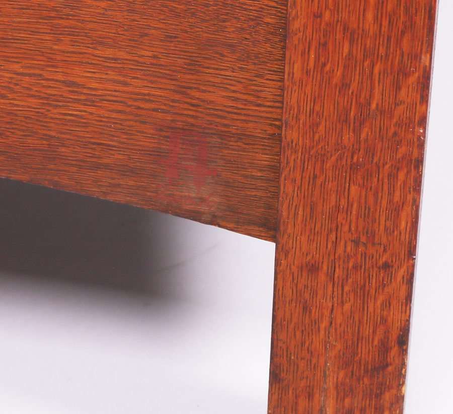 Gustav Stickley bowarm morris chair. Excellent original finish. Signed with red decal. 38"h x 30.25"w x 36"d SOLD