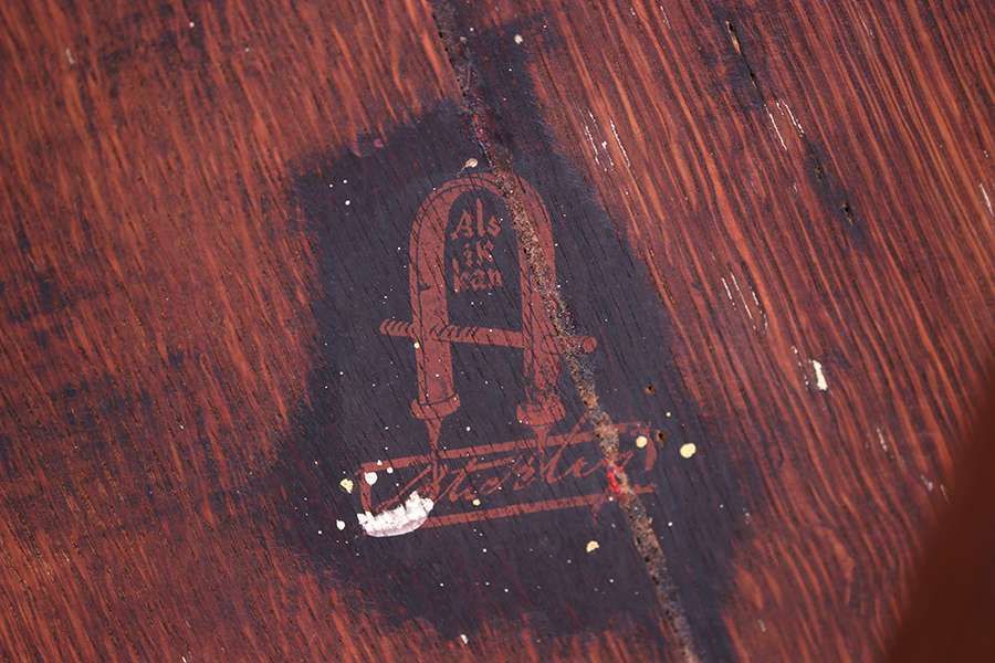 Gustav Stickley #436 lamp table converted to a coffee table. (We would never cutdown such an important Gustav Stickley table but we salvaged and restored it.) Signed with 1902 Stickley signature in box. Very nicely refinished. 26"d x 18"h SOLD