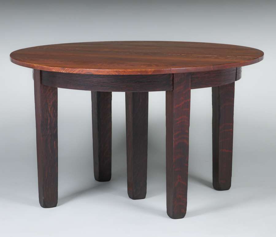 - Gustav Stickley Five-Leg Dining Table c1905
