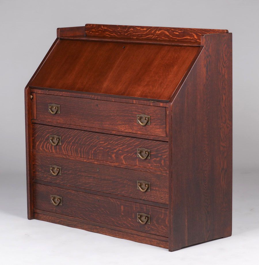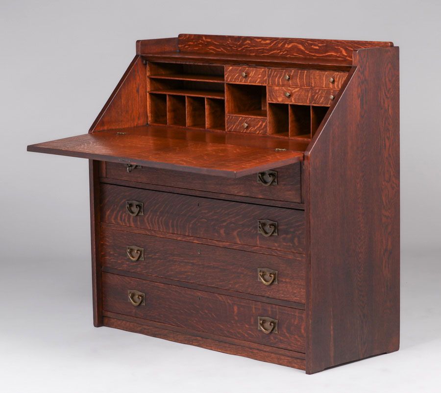 - Gustav Stickley Four-Drawer Dropfront Desk c1912