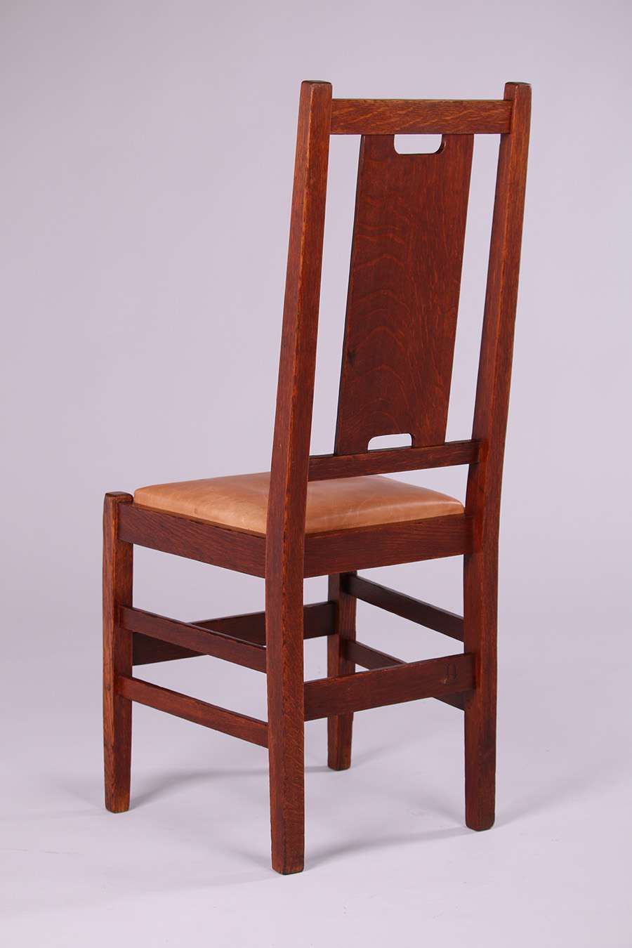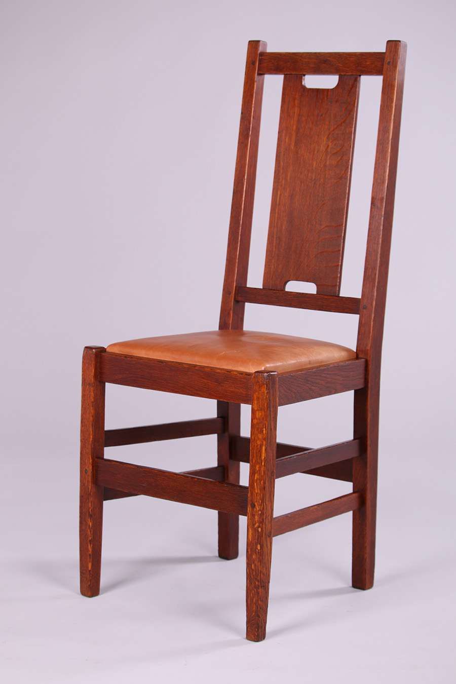 Gustav Stickley H-Back Sidechair. Signed. Original finish. 40.25"h x 16.5"w x 15"d SOLD