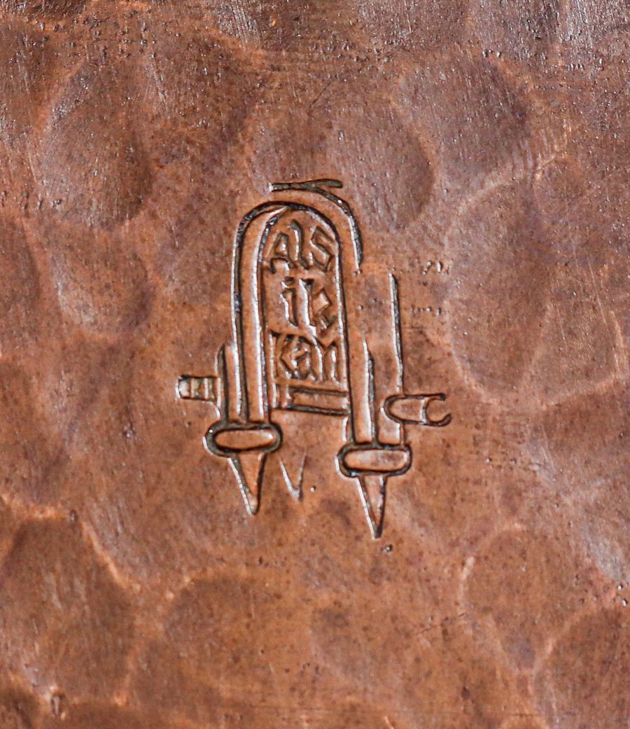Gustav Stickley Hammered Copper Ashtray c1910. Signed. Excellent new patina. 3.5"h x 5"d $950