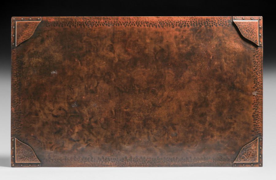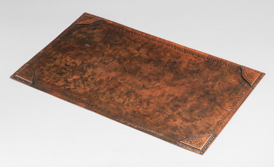 Gustav Stickley Hammered Copper Blotter Pad c1910. Signed. Color added to original patina. 25" x 15" SOLD