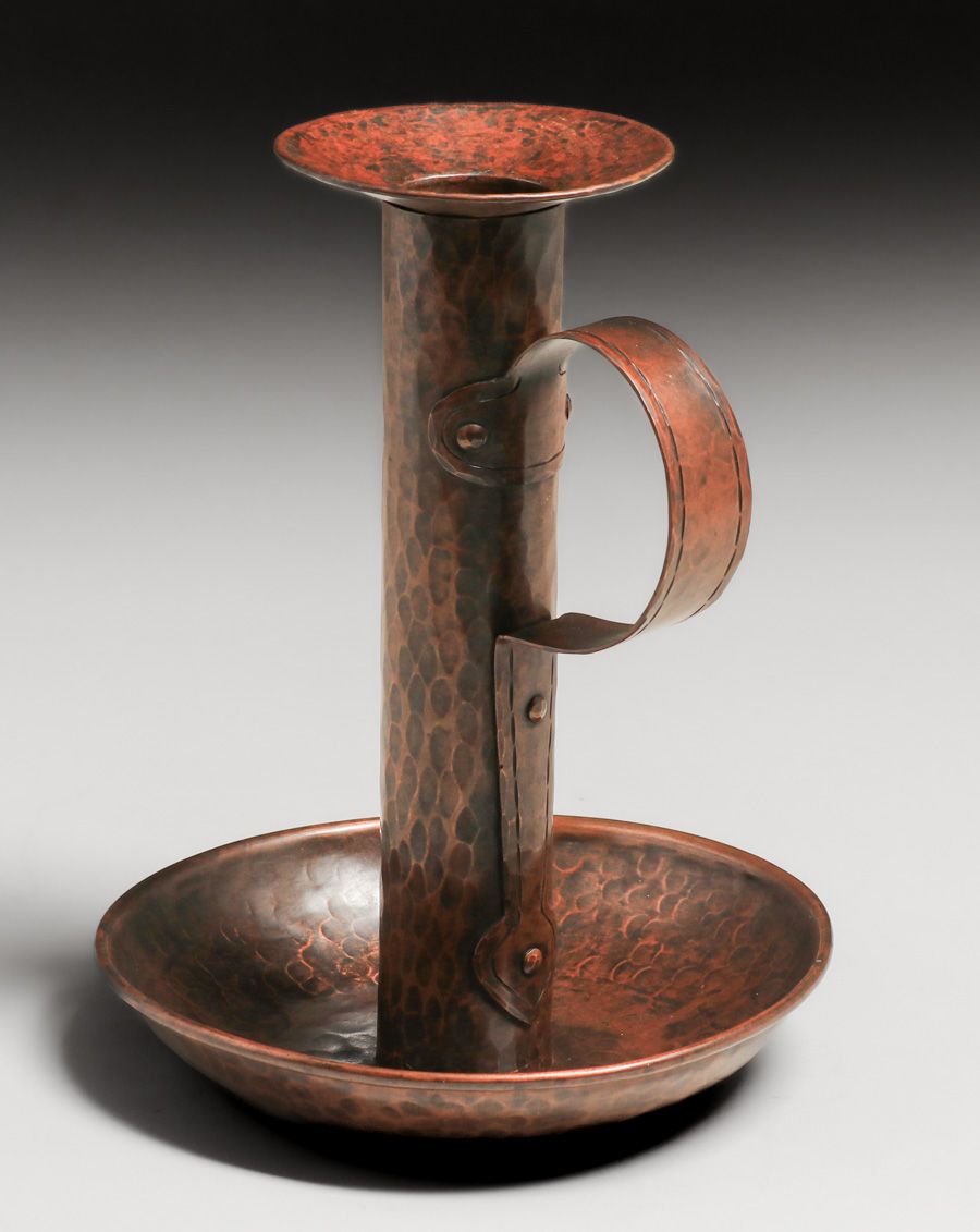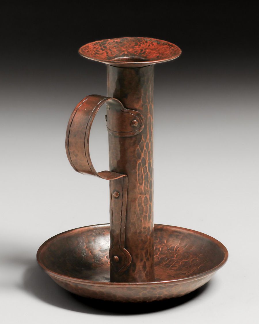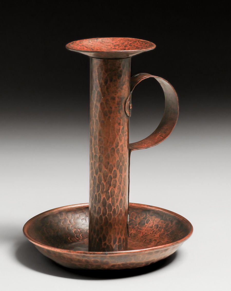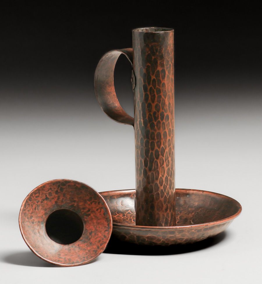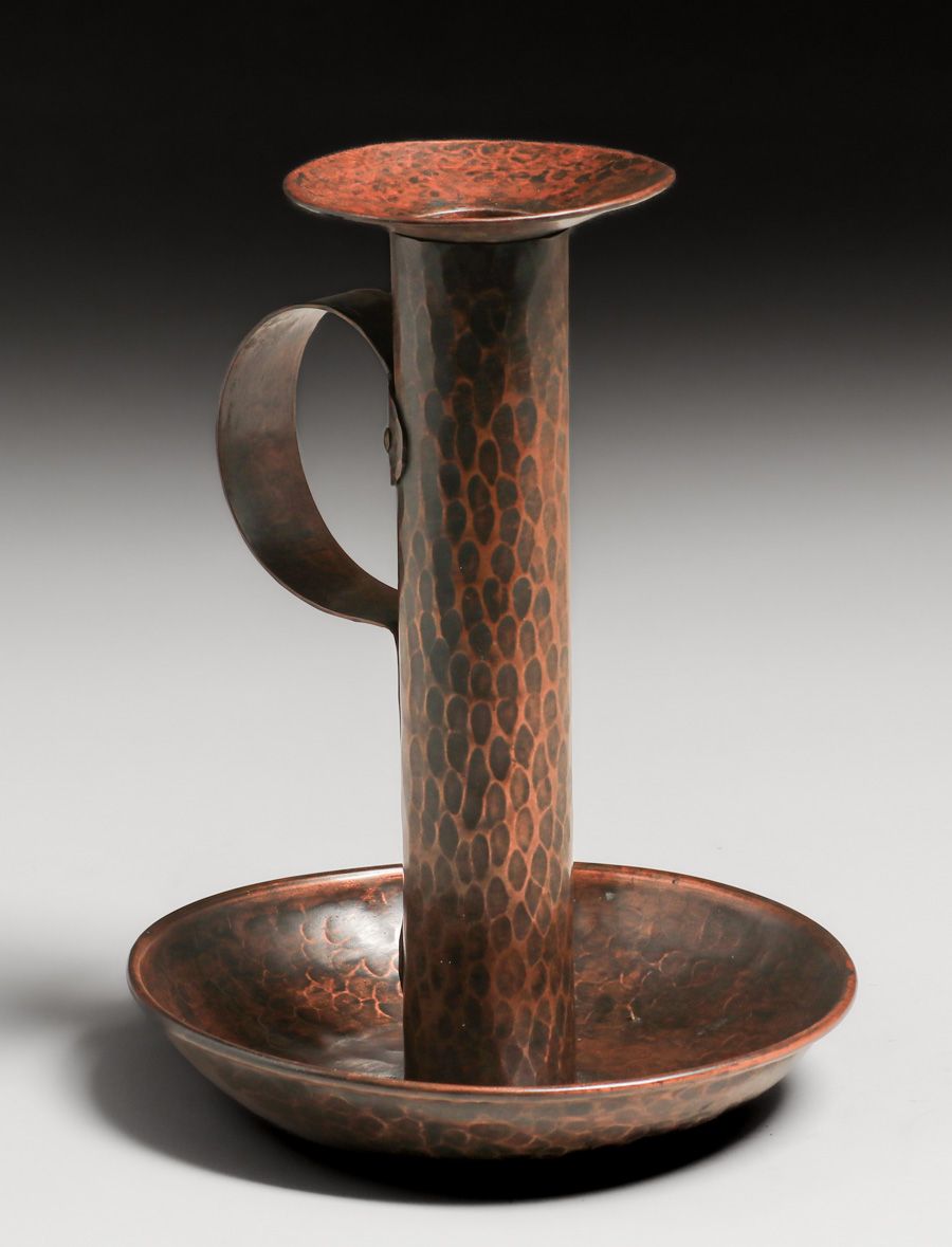 - Gustav Stickley Hammered Copper Chamber Stick c1910