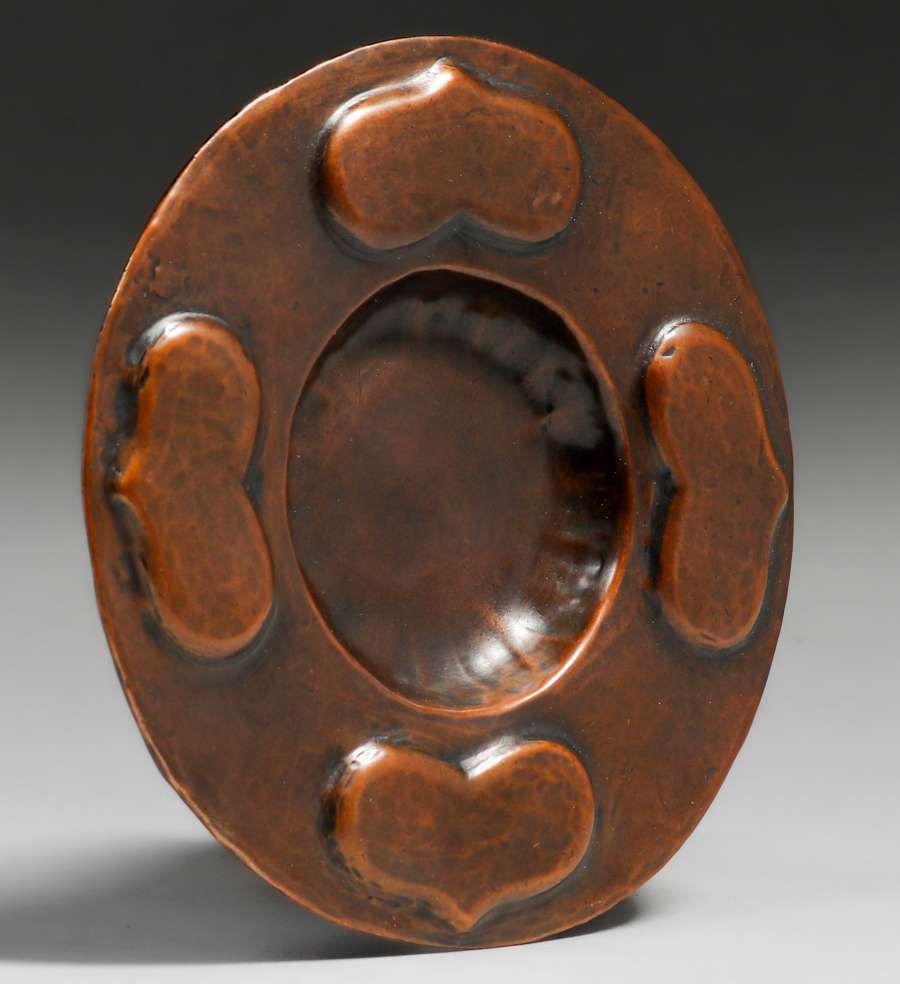 - Gustav Stickley Hammered Copper Heart Tray c1910