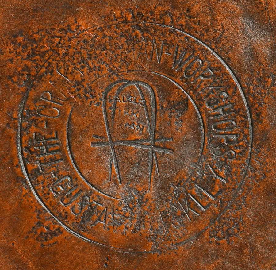 Gustav Stickley Hammered Copper Heart Tray c1910. This version of the Gustav Stickley tray rarely surfaces. Signed. Excellent new patina. 5.75”d SOLD