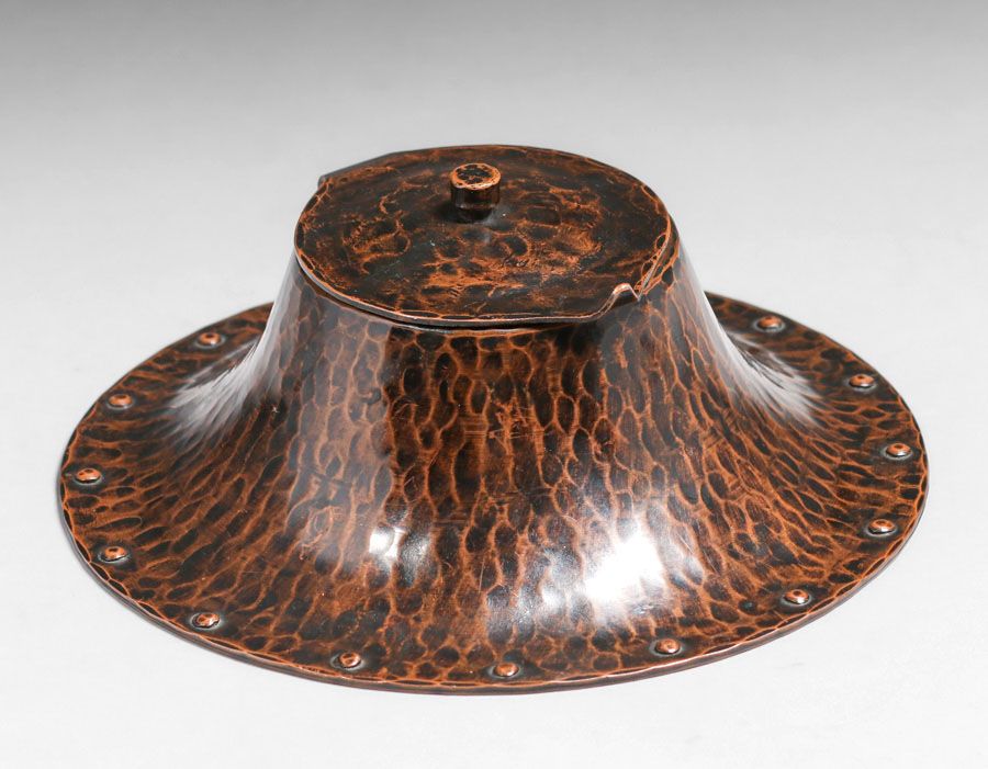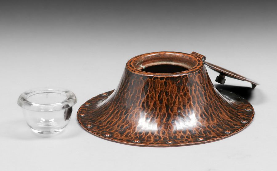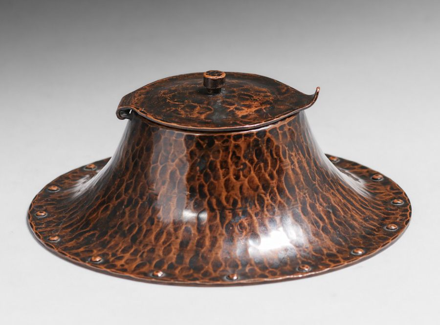 - Gustav Stickley Hammered Copper Inkwell c1910