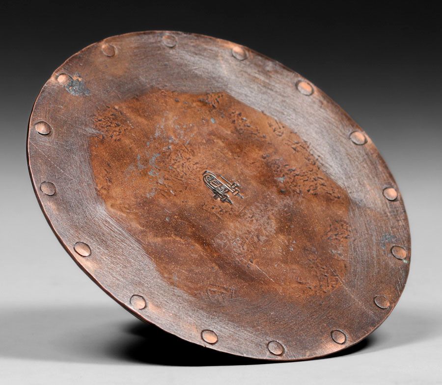 Gustav Stickley Hammered Copper Inkwell c1910. Signed. Excellent original patina. 5.5″d x 2"h SOLD