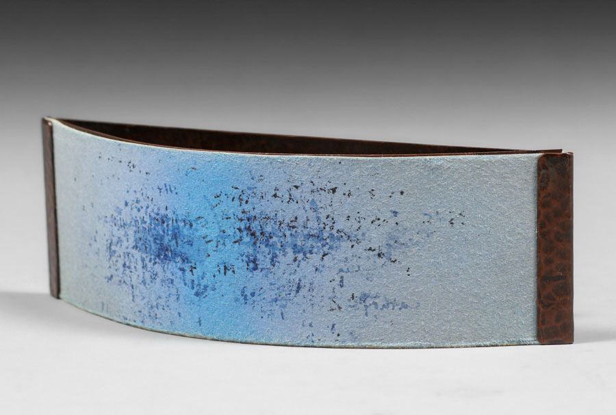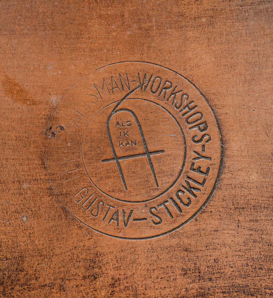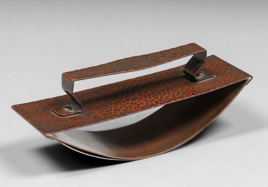 Gustav Stickley Hammered Copper Rolling Ink Blotter c1910. Signed. Excellent original patina. 2.5″h x 2″ x 6.75″w SOLD