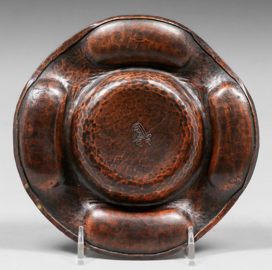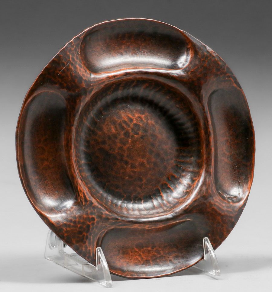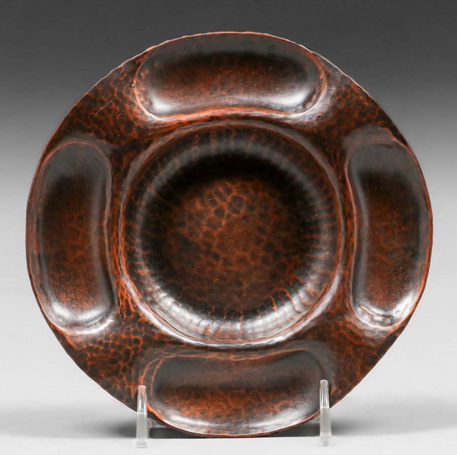 - Gustav Stickley Hammered Copper Round Tray c1910