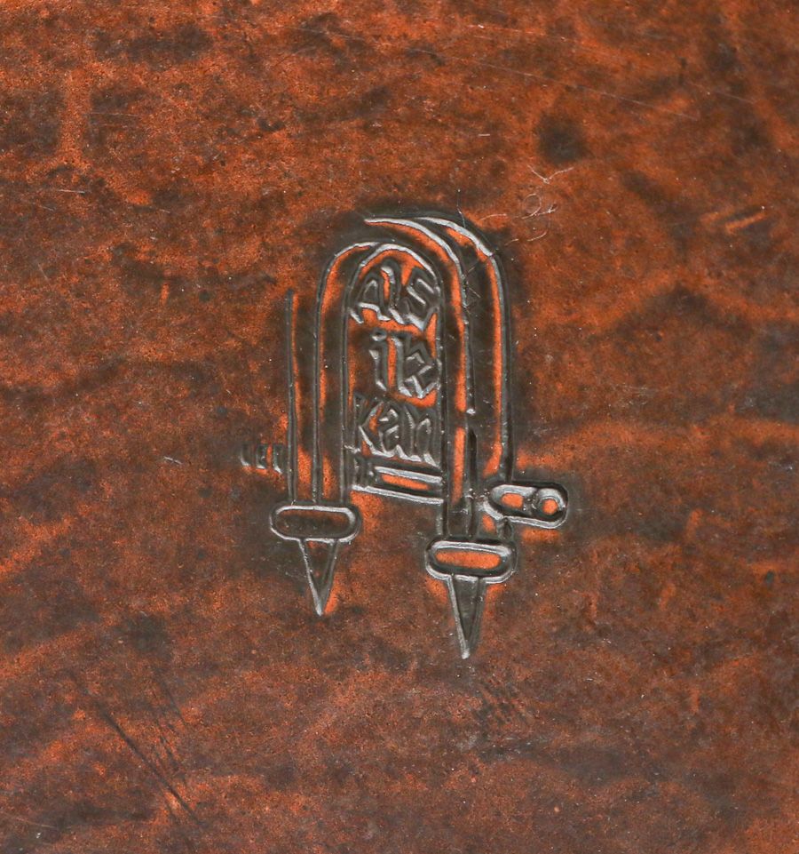 Gustav Stickley Hammered Copper Round Tray c1910. Signed. Excellent new patina. 5.75"d SOLD