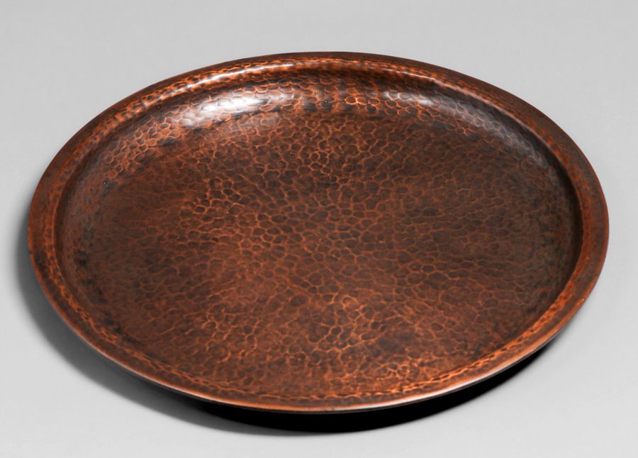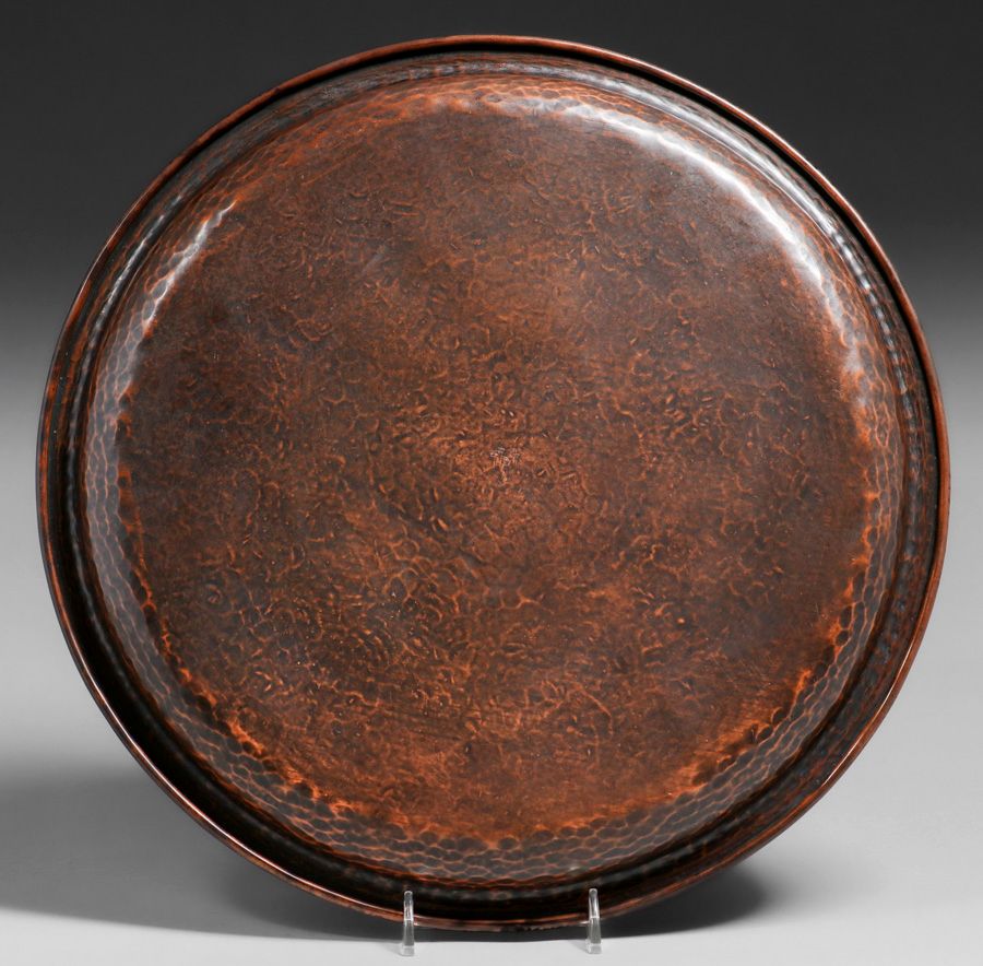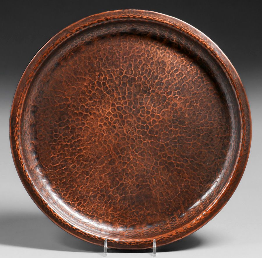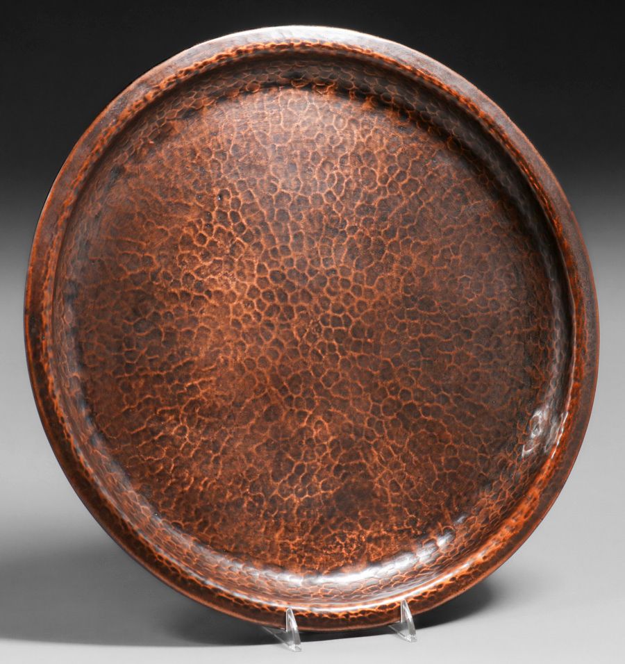 Gustav Stickley Hammered Copper Tray c1910. Signed. Excellent new patina. 13"d SOLD