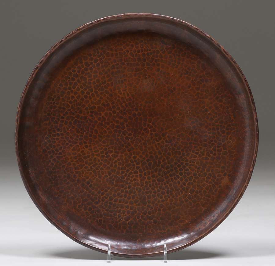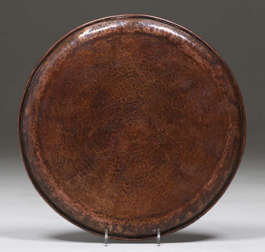 Gustav Stickley Hammered Copper Tray c1910. Signed. Excellent new patina. 11.5"d SOLD