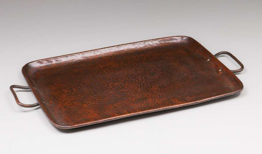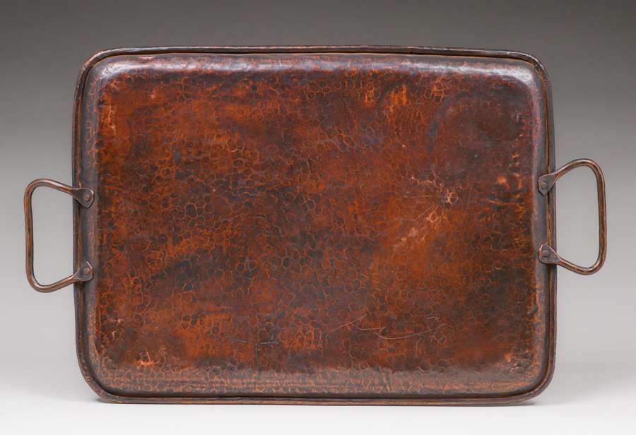 - Gustav Stickley Hammered Copper Two-Handled Serving Tray c1910