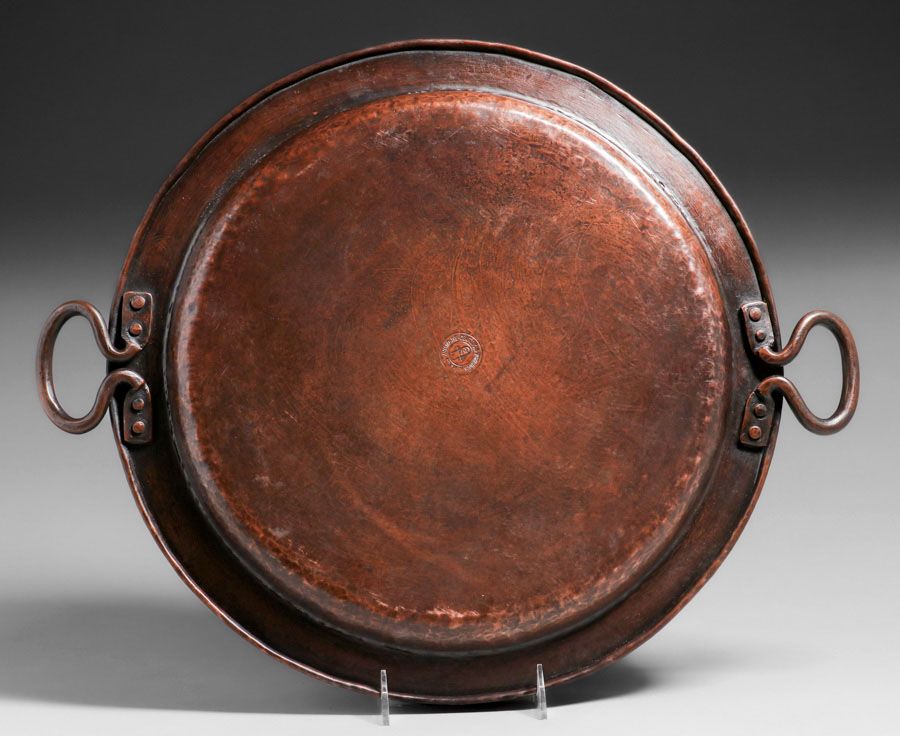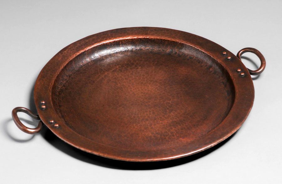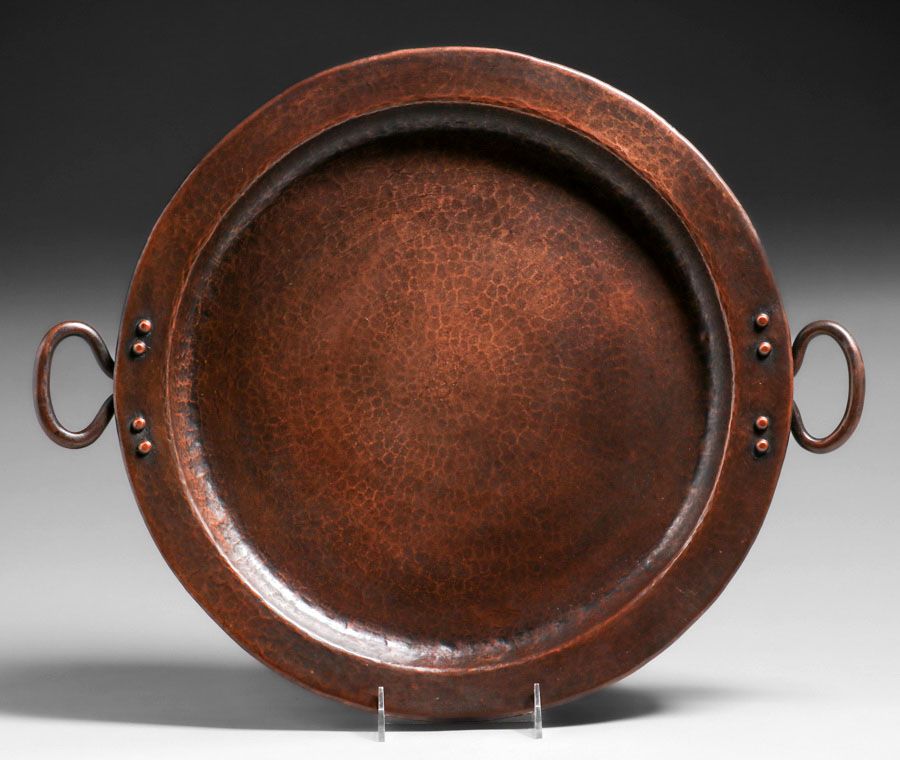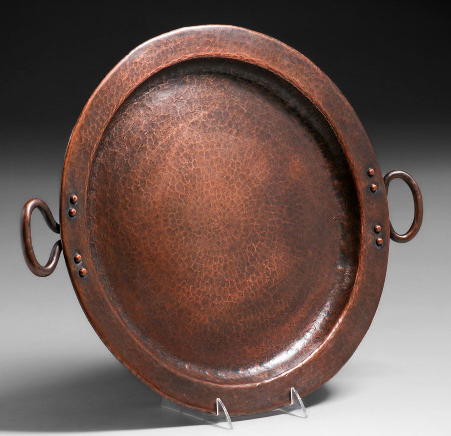 - Gustav Stickley Hammered Copper Two-Handled Tray c1905
