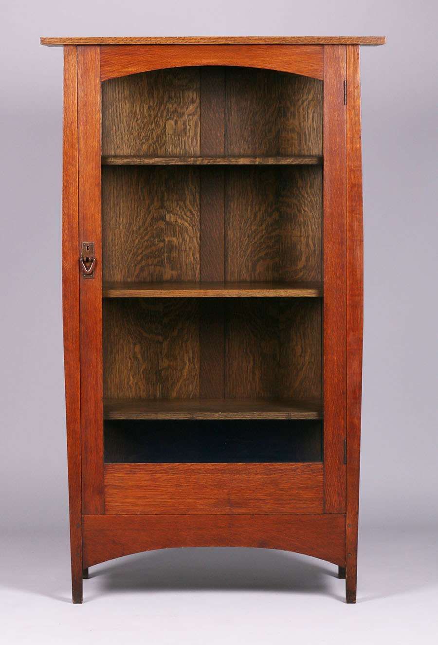 Gustav Stickley - Harvey Ellis designed one-door china cabinet. Signed. Excellent original finish. 60"h x 36"w x 15.5"d SOLD