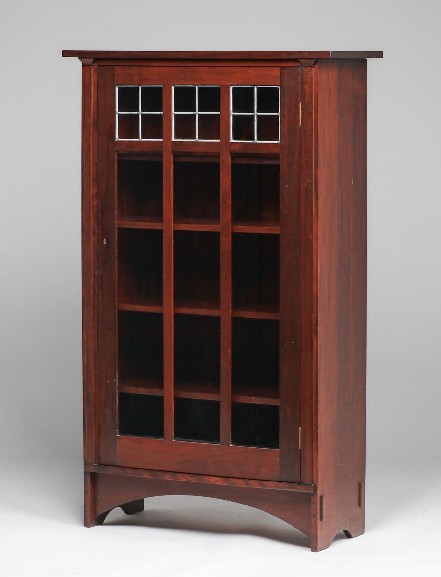 - Gustav Stickley - Harvey Ellis Designed One-Door Mahogany Leaded Glass Bookcase c1904