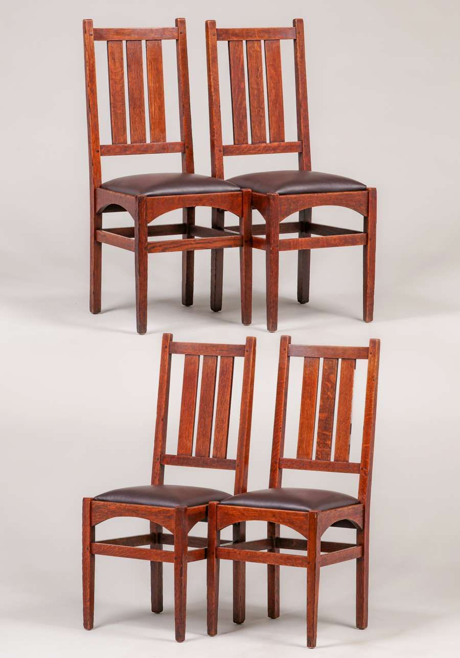 - Gustav Stickley - Harvey Ellis Designed Set of 4 Dining Chairs c1905