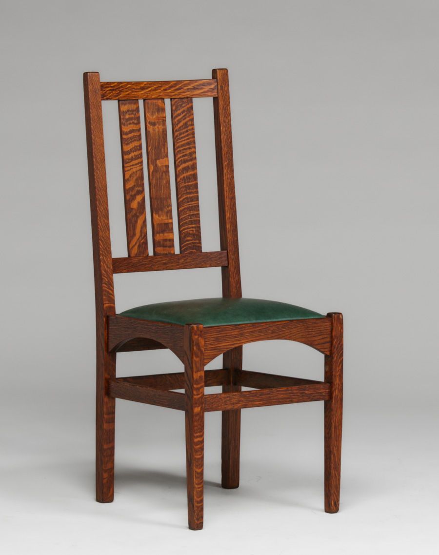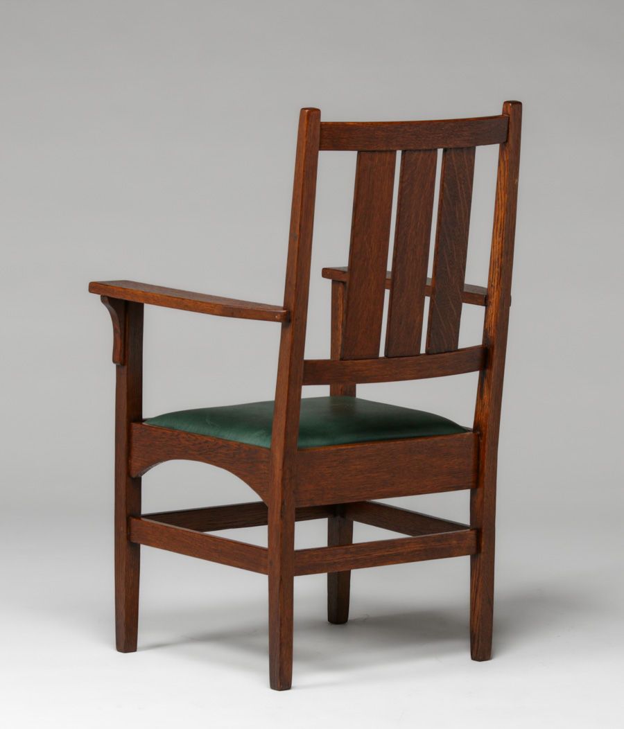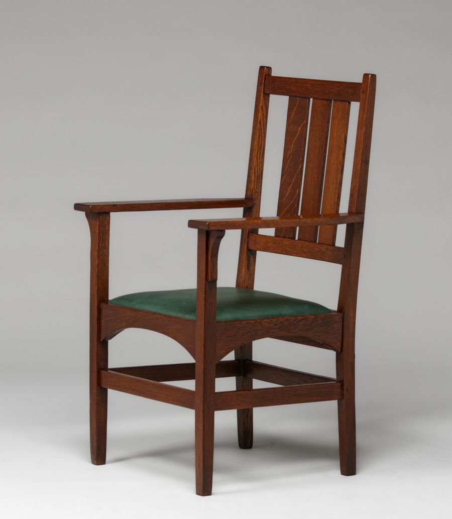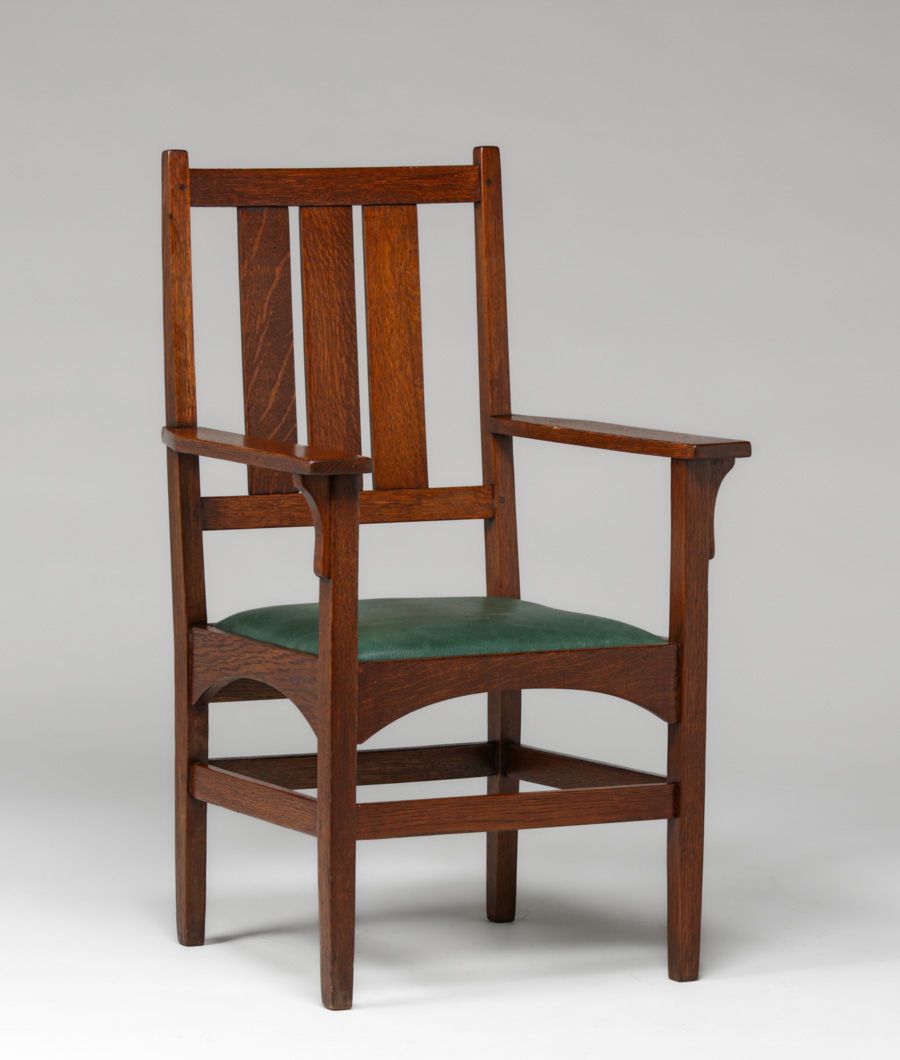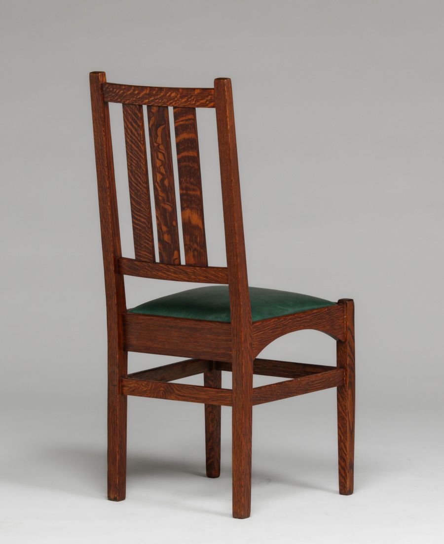 Gustav Stickley – Harvey Ellis Designed Set of 8 Chairs c1905-1910. Signed. Very nicely refinished. Rock solid sturdy. Armchairs 40.5″h x 24.5″w x 22″d. Side chairs 39″h x 16.75″w x 16.5″d