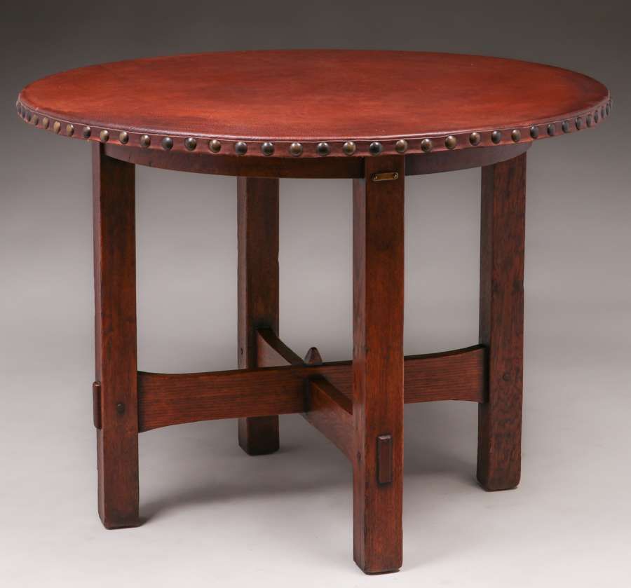 - Gustav Stickley Leather-Top Lamp Table c1902