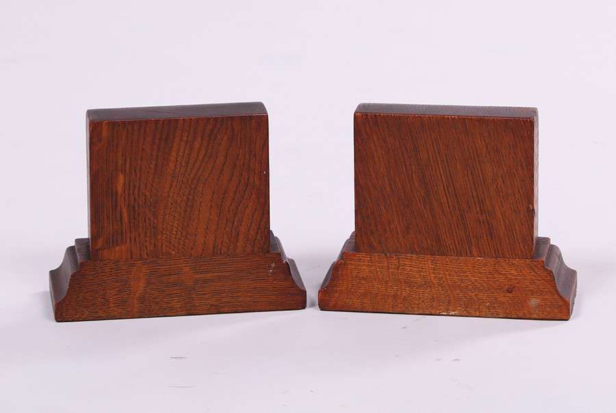 Pair of Gustav Stickley Oak Bookends. Signed with branded mark. Excellent original finish. 6"h x 7"w SOLD