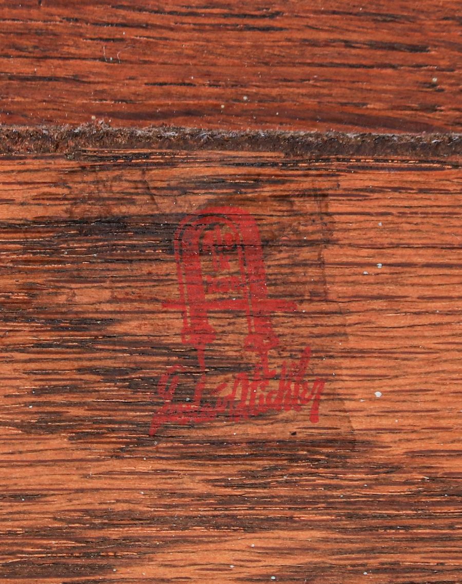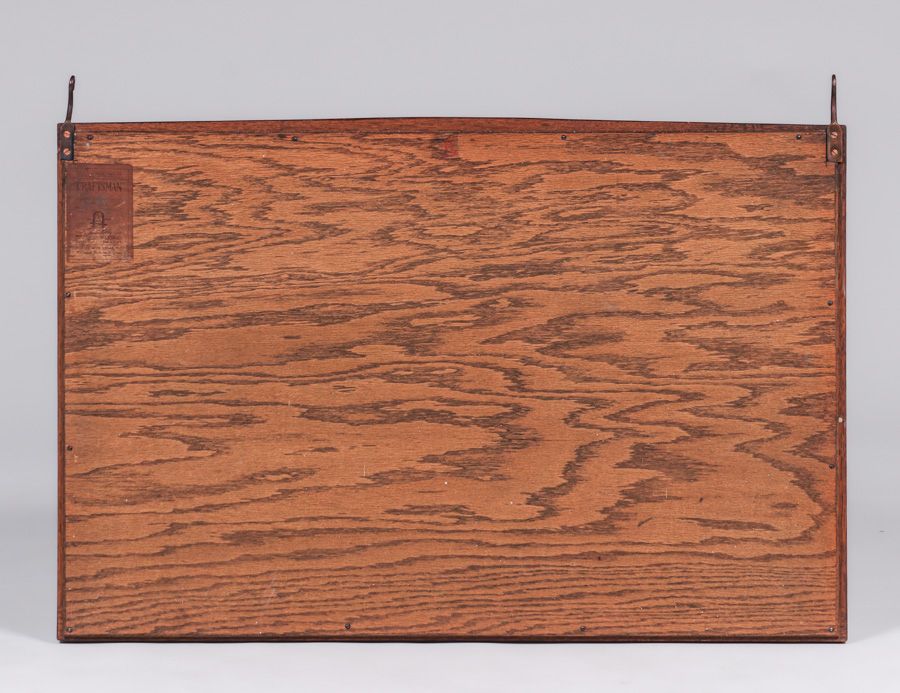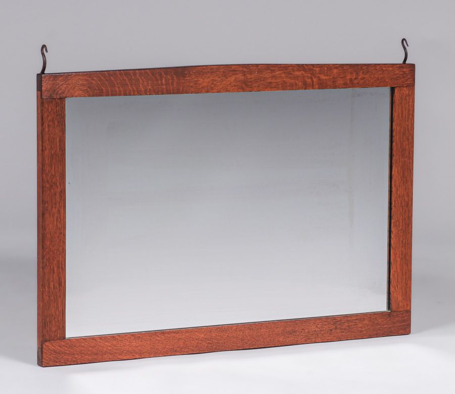 Gustav Stickley Oak Hanging Mirror c1910. Signed with both red decal and paper label. Excellent original finish. 23.5"h + hooks x 35.25"w SOLD