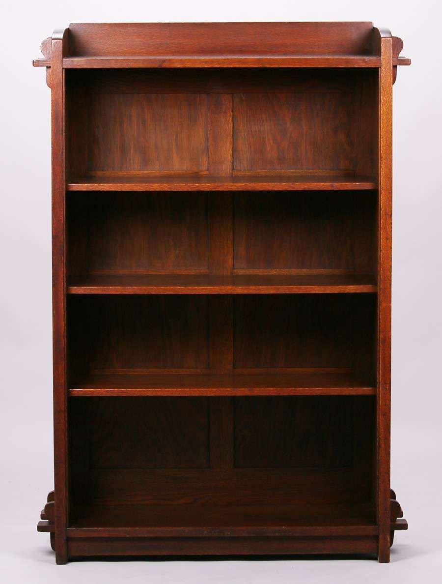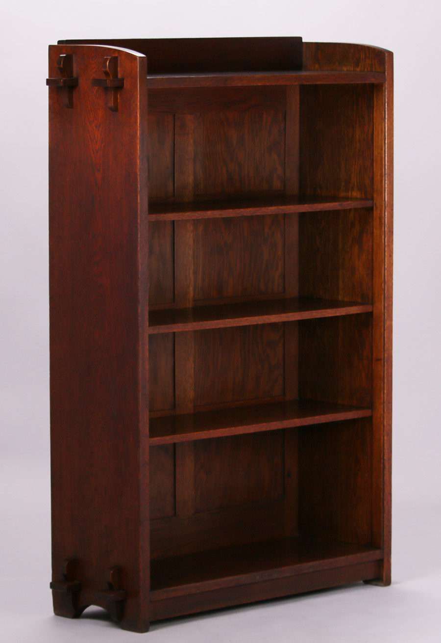 Gustav Stickley open bookcase with tenon & key construction. Unsigned. Excellent original finish. 56"h x 39"w x 13"d SOLD