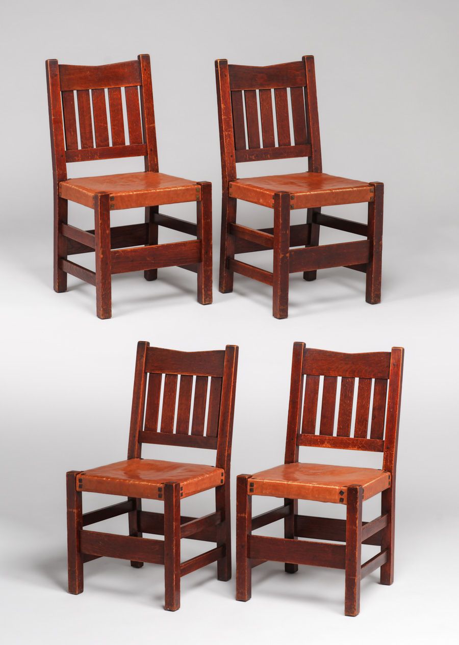 - Gustav Stickley Set of 4 V-Back Side Chairs c1910