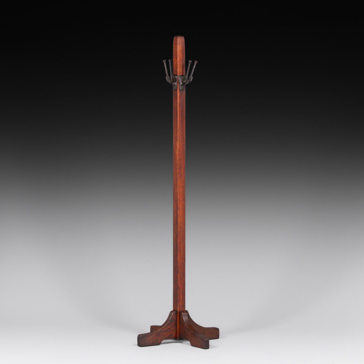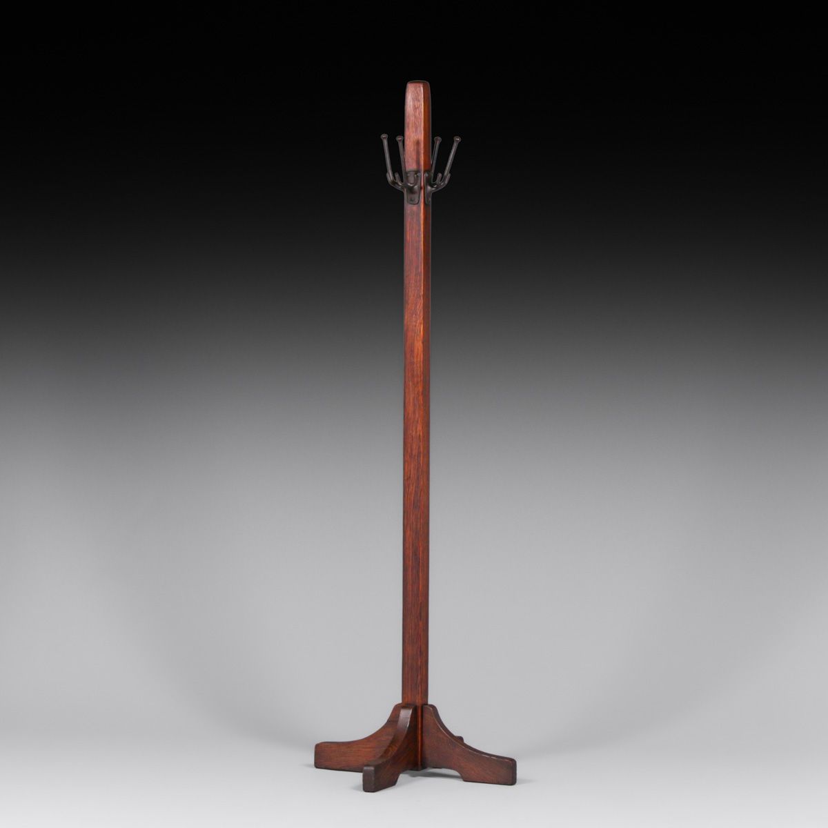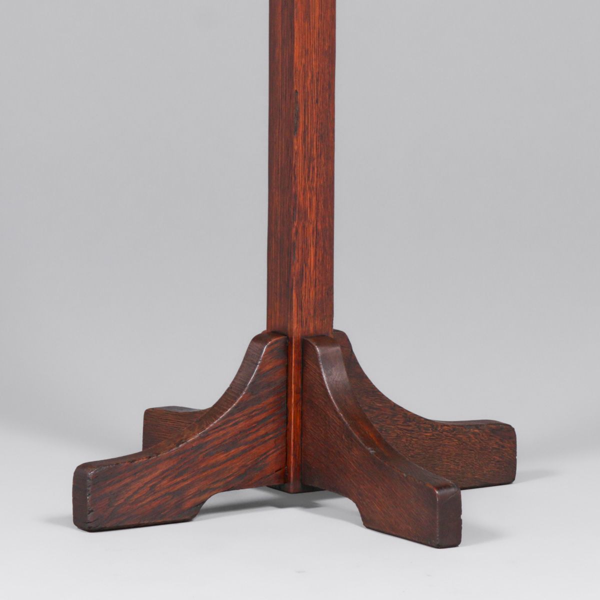 Gustav Stickley Single Oak Coatrack c1910. Unsigned. Excellent original finish. 72”h x 23.5” x 23.5”
