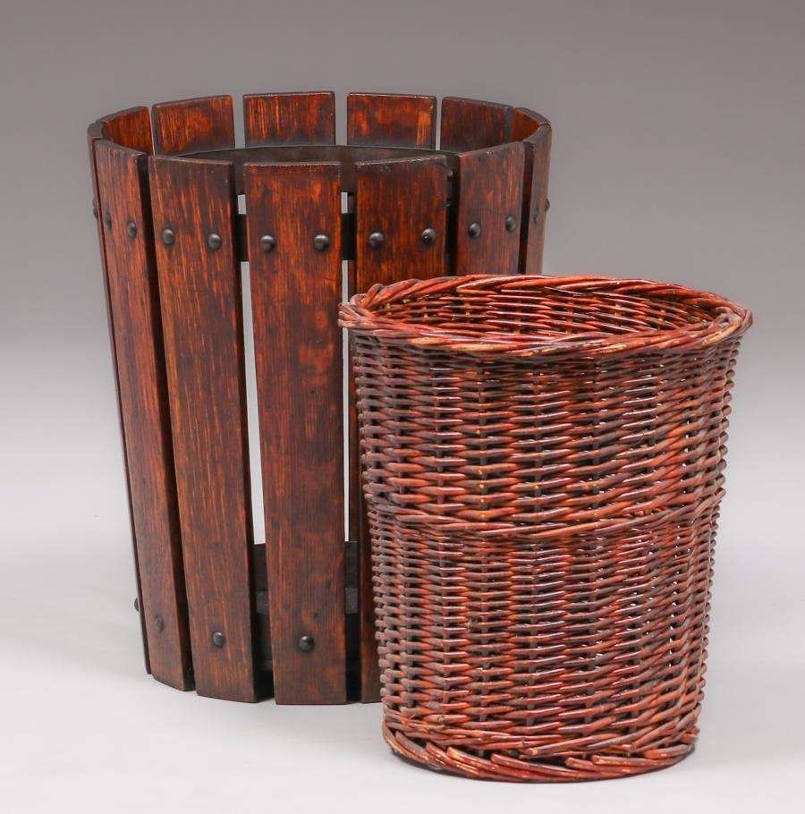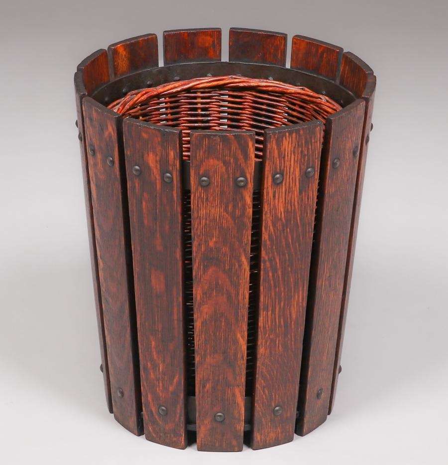 - Gustav Stickley Slatted Waste Basket c1910