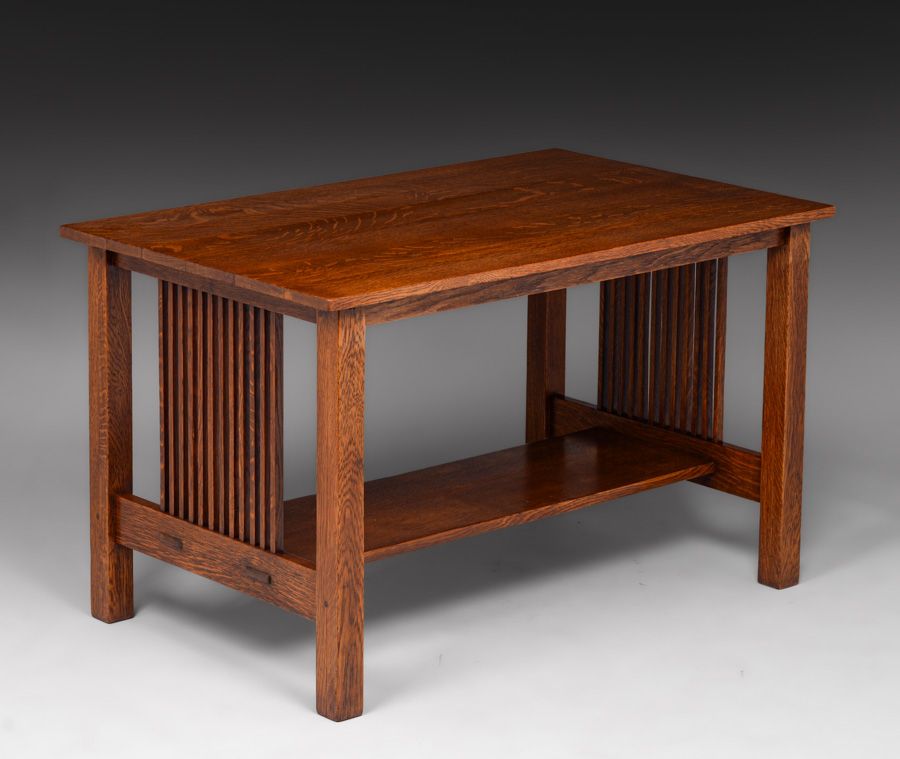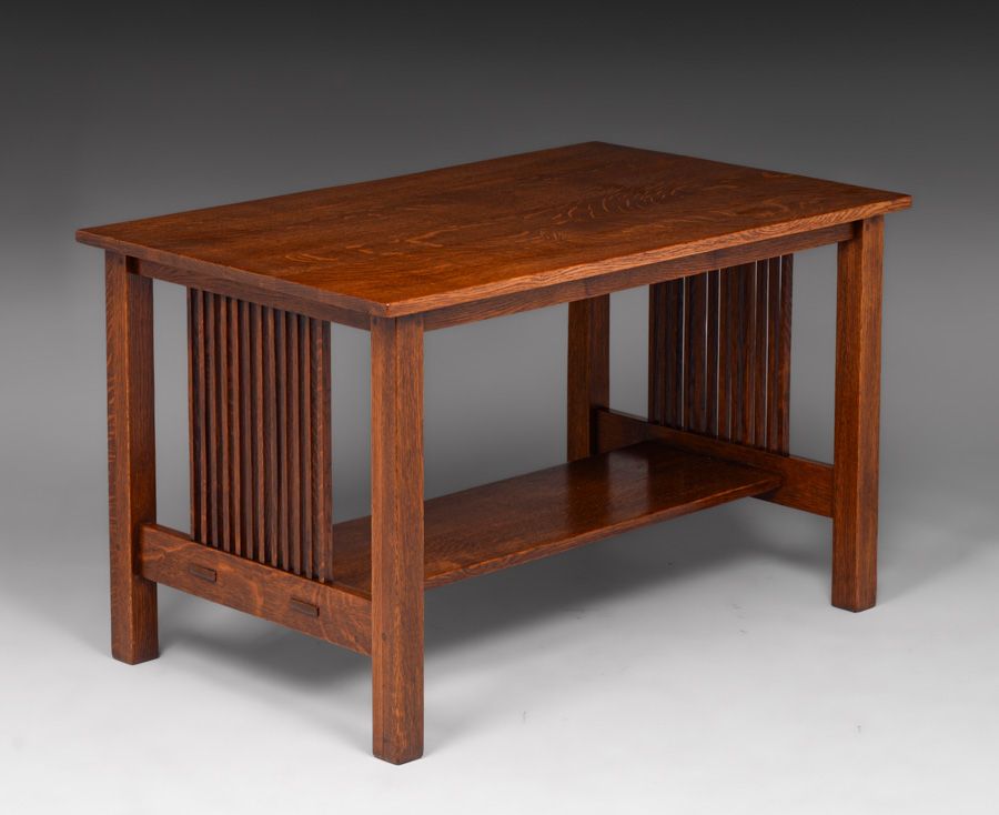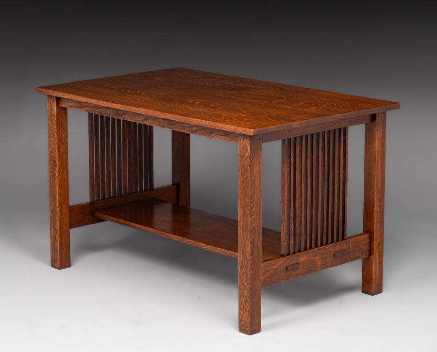 Gustav Stickley Spindled Library Table c1907. Unsigned. Very nicely refinished. Very sturdy. 48"w x 30"d x 29"h