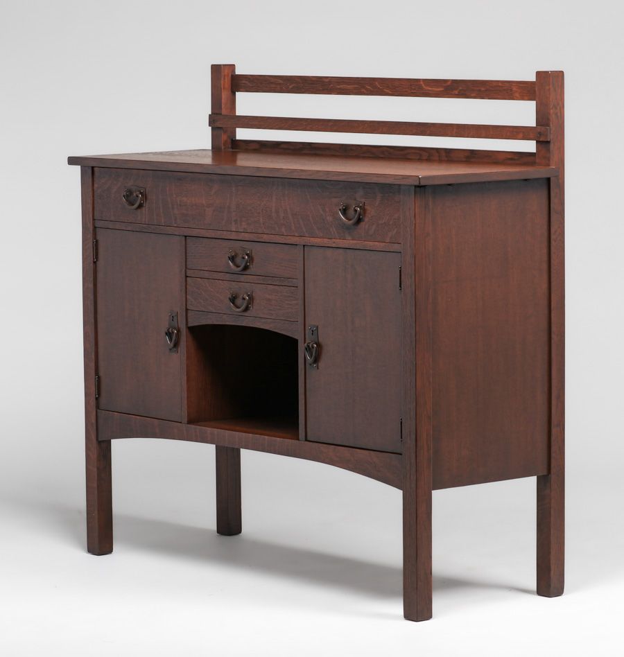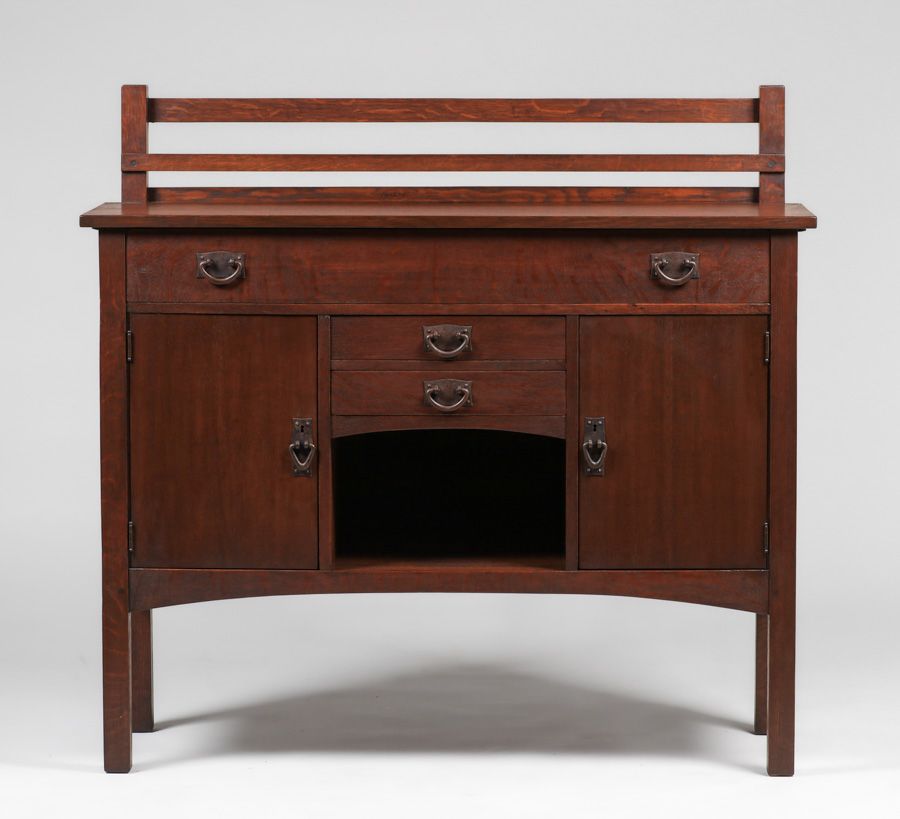 Gustav Stickley Two-Door Sideboard c1910. Signed with paper label. Very nicely refinished. 49″w x 46.25″h x 18.25″d SOLD