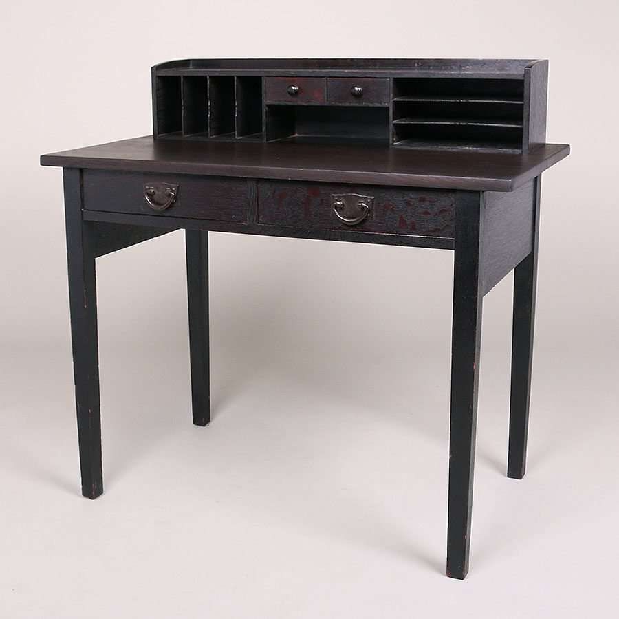 - Gustav Stickley two-drawer desk with top gallery letter-rack